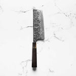 The Nakiri knife, revered in Japanese culinary traditions, is engineered for exceptional vegetable cutting. Featuring a distinct, straight-edged, and rectangular blade, it excels in creating uniform, precise cuts and aesthetic presentation. Its technical design ensures efficiency and precision, making it a valuable tool for both professional chefs and home cooks.