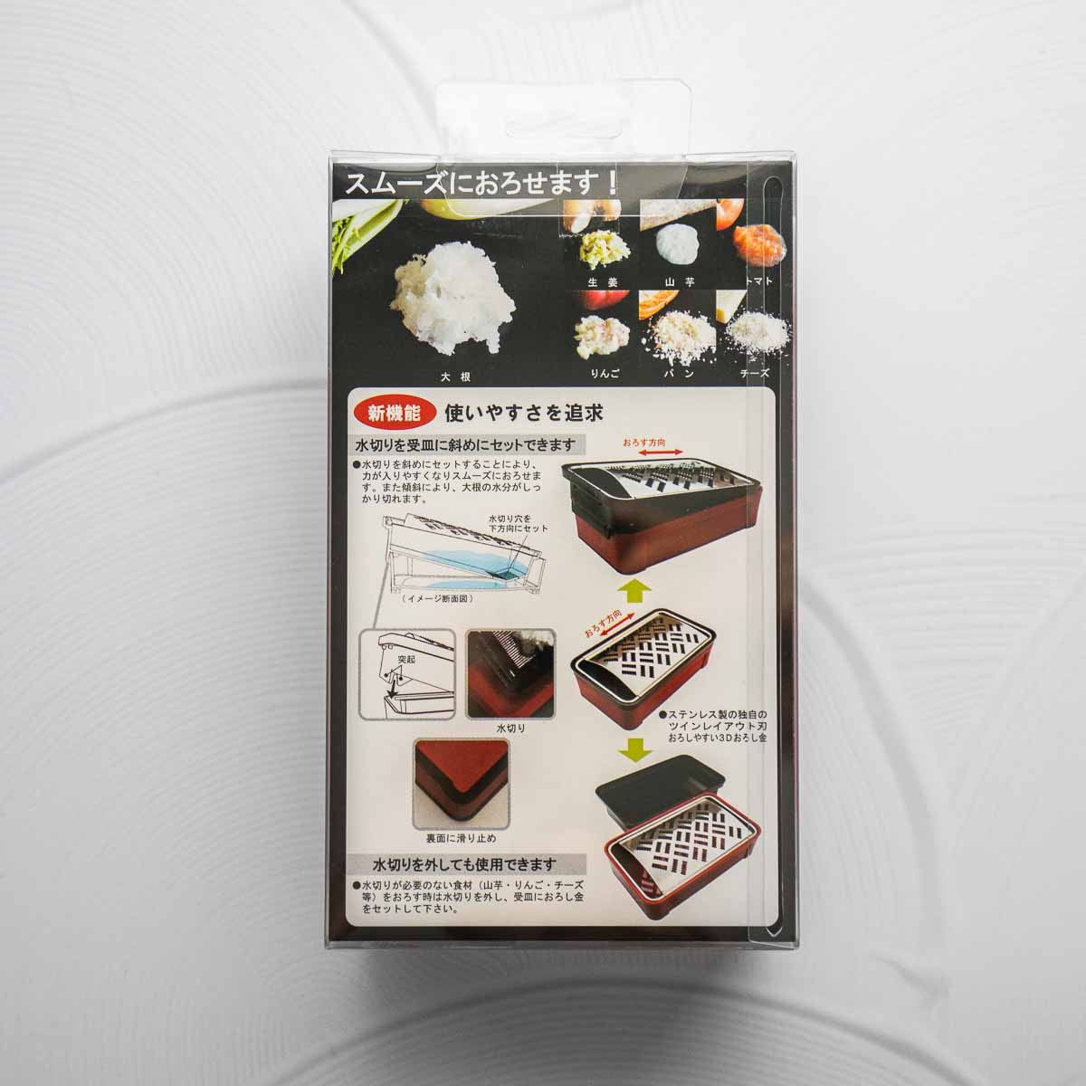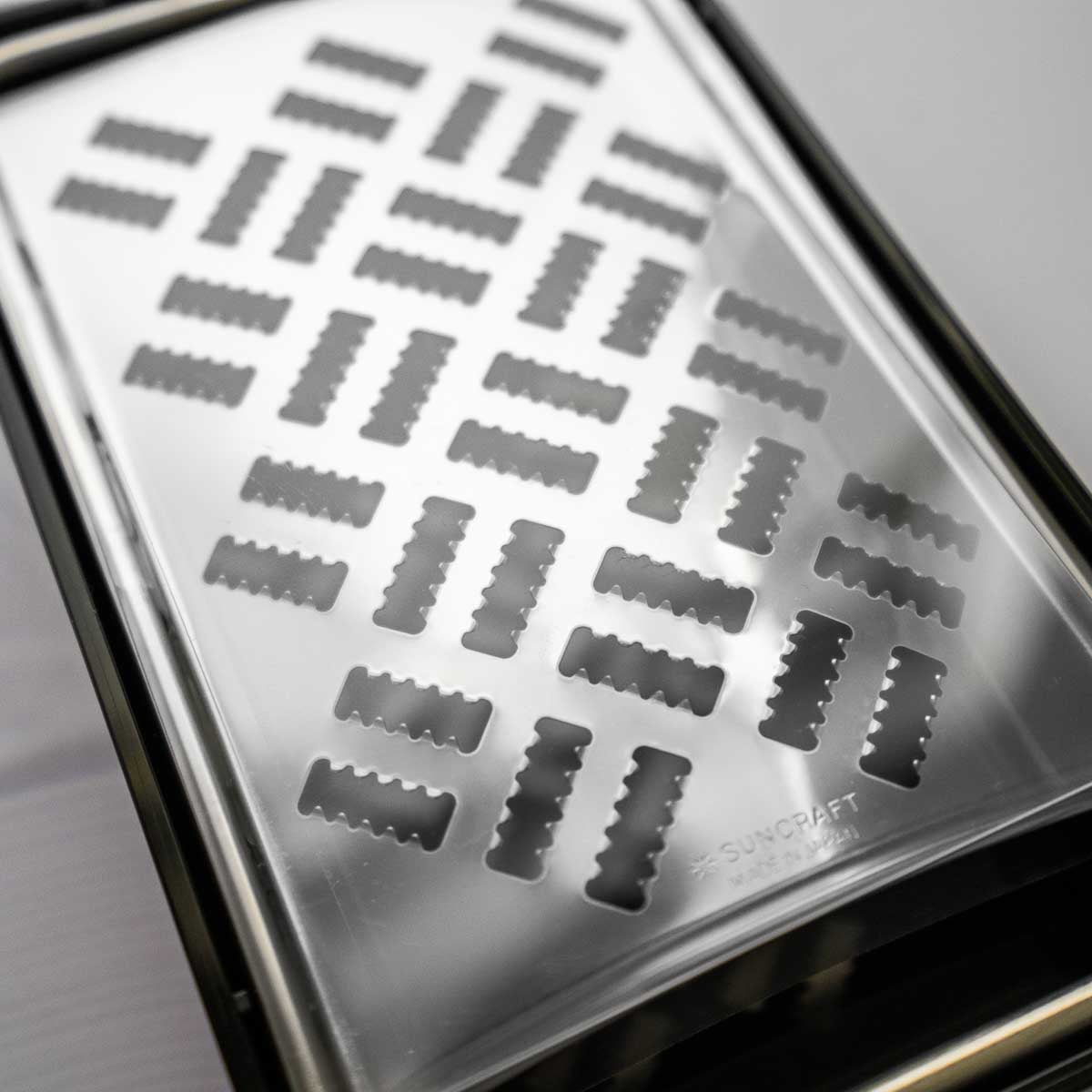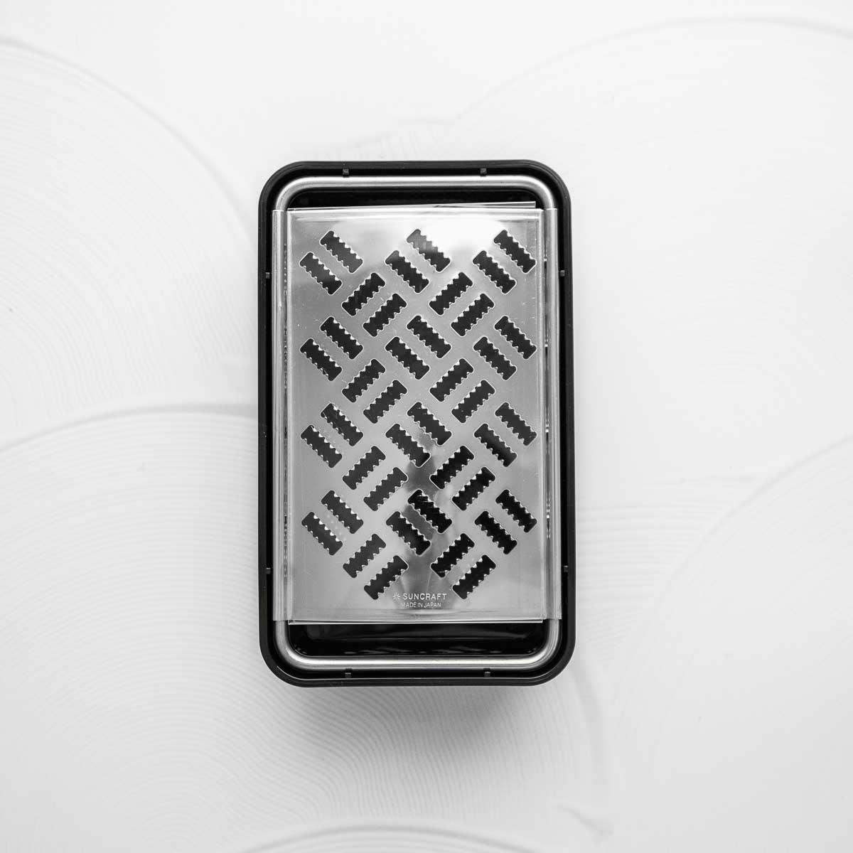 Unit price / perA clever box grater by Suncraft with catcher, and draining tool to remove excess moisture.
