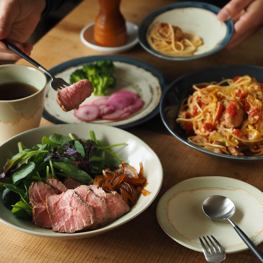 A dish with a glossy glaze. It looks like the sky, the sea, and the earth and forests. The colors are characteristic of nature. The dishes with glazes like creatures, with no two of the same color, are delightful dishes that look great when served. Unpretentious Even your everyday dishes may look wonderful.