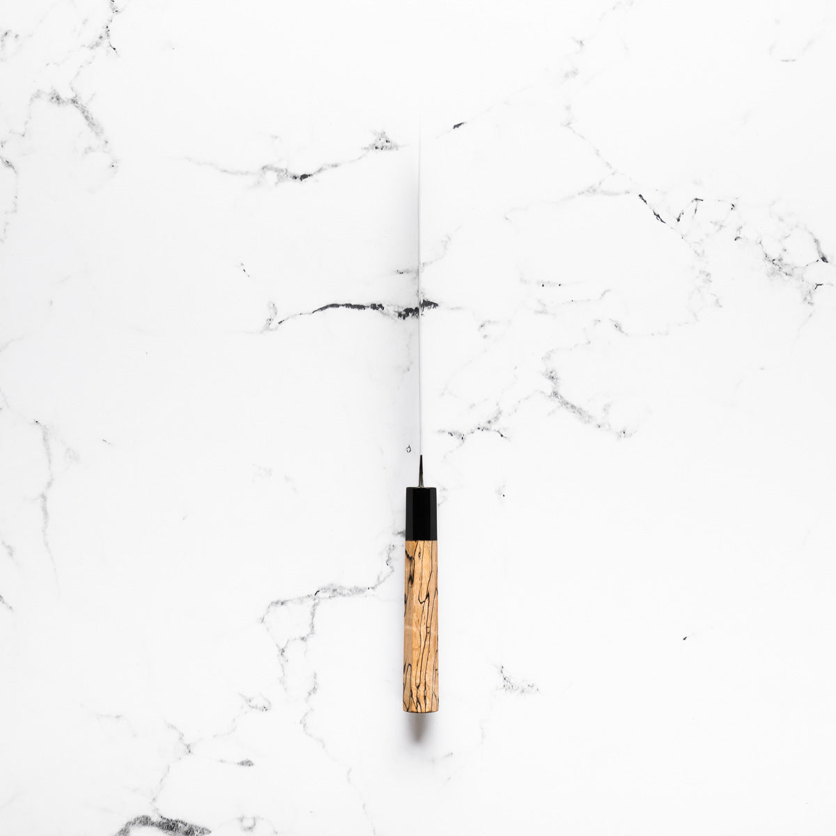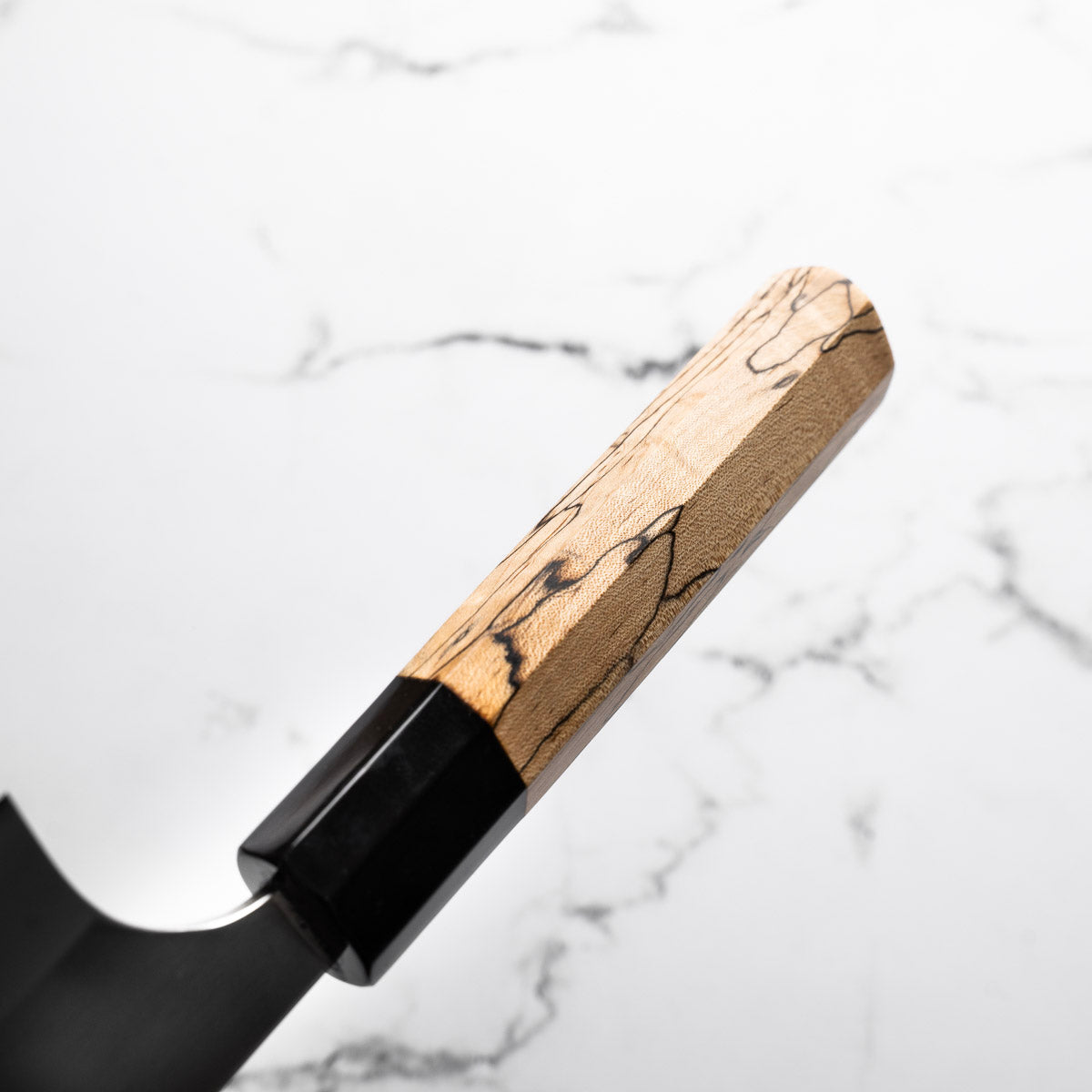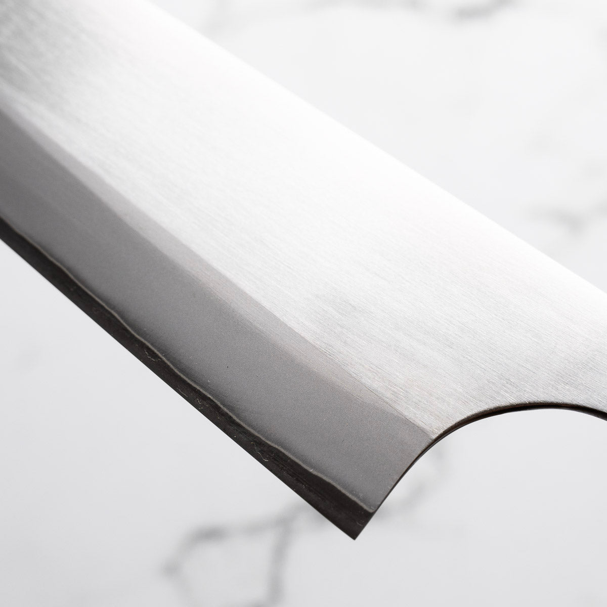 ZDP-189 steel, a premium high-carbon stainless steel developed by Hitachi, is celebrated for its exceptional hardness and unmatched edge retention. With an extremely high carbon content and added chromium, it offers outstanding sharpness and corrosion resistance. Its remarkable wear resistance and ability to hold a razor edge make ZDP-189 one of the finest choices for high-performance Japanese knives.