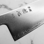 Japanese SLD steel is a semi-stainless steel crafted through advanced metallurgy. It is used often in Sanjo knives, has a non-chippy edge and is extremely tough. This high-carbon steel, enriched with chromium and molybdenum, offers excellent performance, but be mindful not to leave it wet for extended periods.