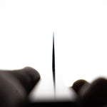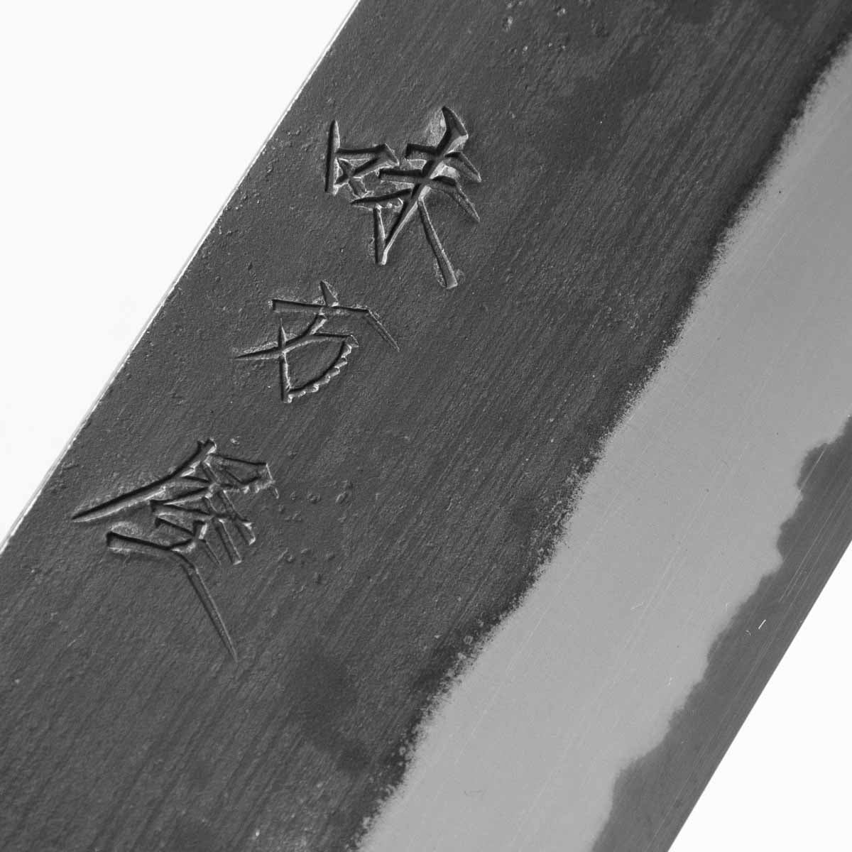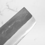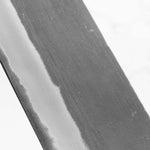 Japanese White Steel #2, a traditional high-carbon steel, is cherished for its purity and fine grain structure, enabling razor-sharp edges, at the cost of being reactive. It is one of the easiest steels to sharpen, but cannot be left wet for even short periods otherwise rust spots can occur. If you’re fastidious in your knife maintenance, this knife steel can be extremely rewarding to use.