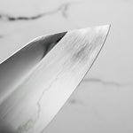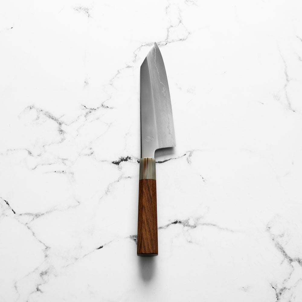 The Bunka knife, a versatile and traditional Japanese kitchen tool, features a distinctive, angular tip and a wide blade. It's designed for precision tasks like slicing, dicing, and chopping. Ideal for handling vegetables, meat, and fish, the Bunka is a multifunctional knife celebrated for its utility and unique aesthetic.