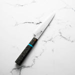 The Petty knife, a quintessential tool in Japanese cuisine, is a smaller utility knife used for precise, delicate tasks. Often considered a smaller sibling to the chef's knife, it excels in hand-held tasks like peeling, trimming, and intricate cutting. Its versatility makes it an essential for detailed culinary work.