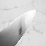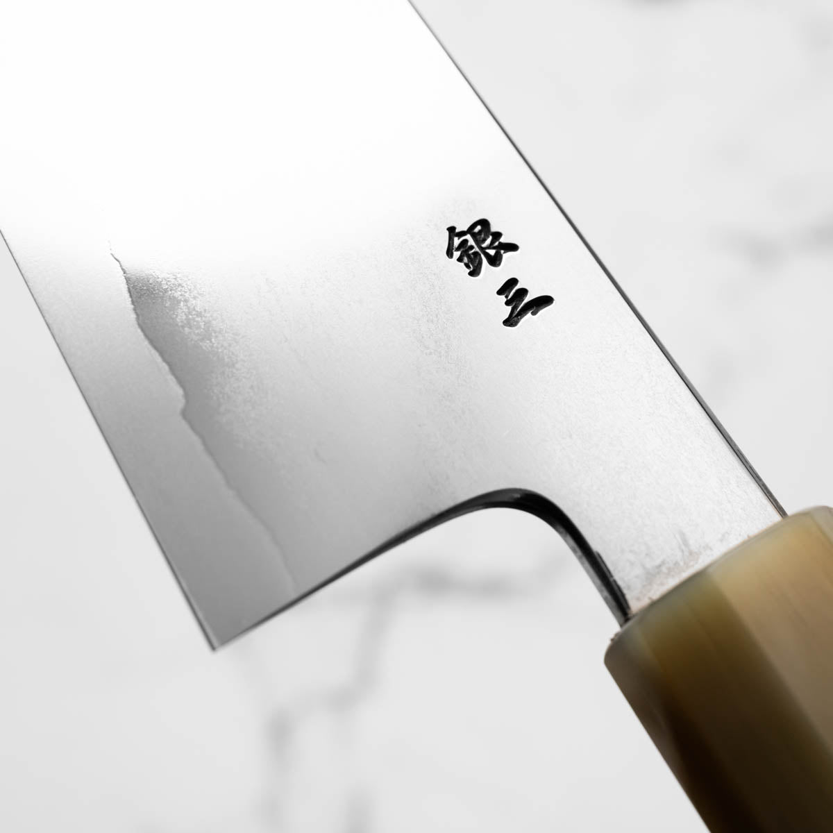 Japanese Ginsan steel, also known as Silver-3 or G3, is an underrated high-grade semi-stainless steel loved by many for being in the ‘goldilocks zone’ of knife steels. It holds a very respectable edge, but is effortless to sharpen. It is considered the semi-stainless version of White 2. It is the knife steel of choice for many home cooks and professional chefs alike.