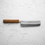 The Nakiri knife, revered in Japanese culinary traditions, is engineered for exceptional vegetable cutting. Featuring a distinct, straight-edged, and rectangular blade, it excels in creating uniform, precise cuts and aesthetic presentation. Its technical design ensures efficiency and precision, making it a valuable tool for both professional chefs and home cooks.