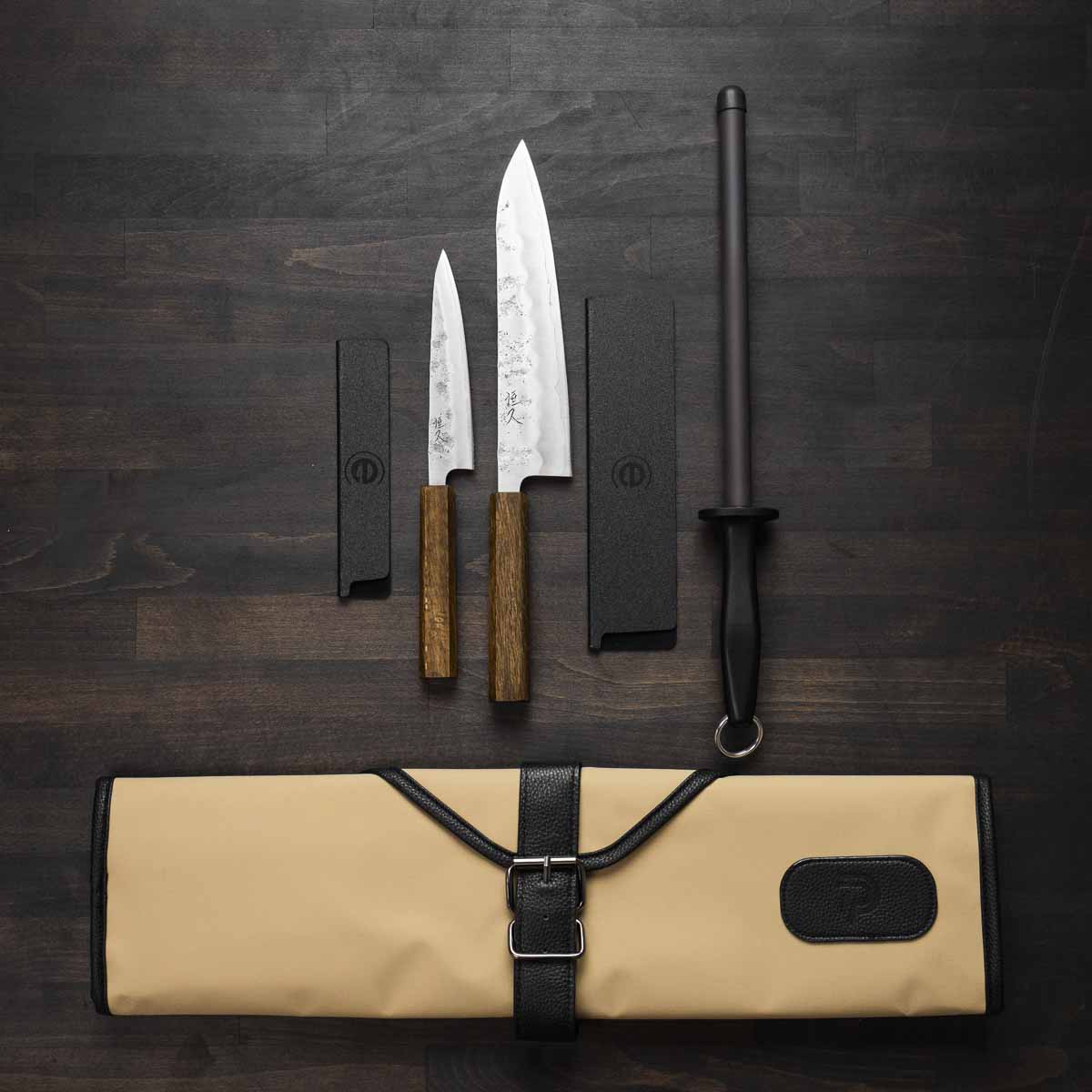 Tsunehisa Ginsan Nashiji 2 Knife Set with Porter Knife Roll