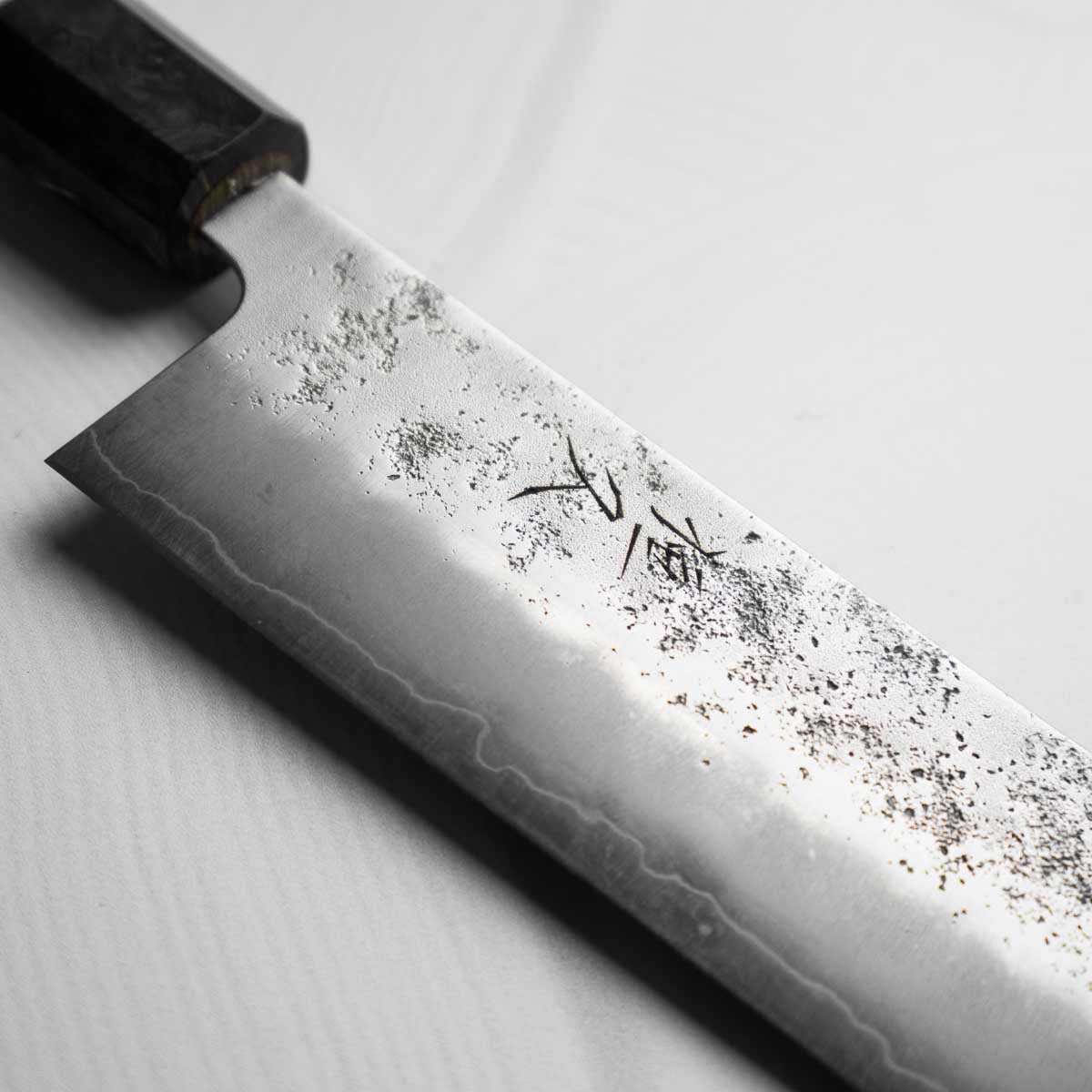 Japanese Ginsan steel, also known as Silver-3 or G3, is an underrated high-grade semi-stainless steel loved by many for being in the ‘goldilocks zone’ of knife steels. It holds a very respectable edge, but is effortless to sharpen. It is considered the semi-stainless version of White 2. It is the knife steel of choice for many home cooks and professional chefs alike.