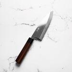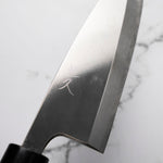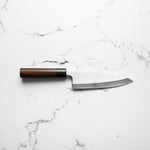 The Deba knife, deeply rooted in Japanese culinary tradition, is a robust, single-bevel knife (sometimes double) primarily designed for fileting fish. Its thick, heavy blade effortlessly glides through fish bones and joints, while preserving delicate flesh. Ideal for seafood preparation, the Deba is a staple in Japanese kitchens for its precision and strength.