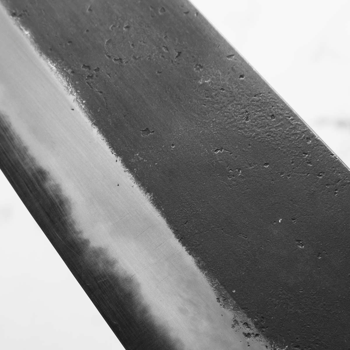 This knife is made from a high-carbon steel and as such, will require a little more care than a regular off-the-shelf knife. It must be dried shortly after use, as prolonged exposure to moisture can cause rust spots to appear. A very light coat of oil during storage also helps to prevent rust spots. A patina (colouration and seasoning of the steel) will occur with use.