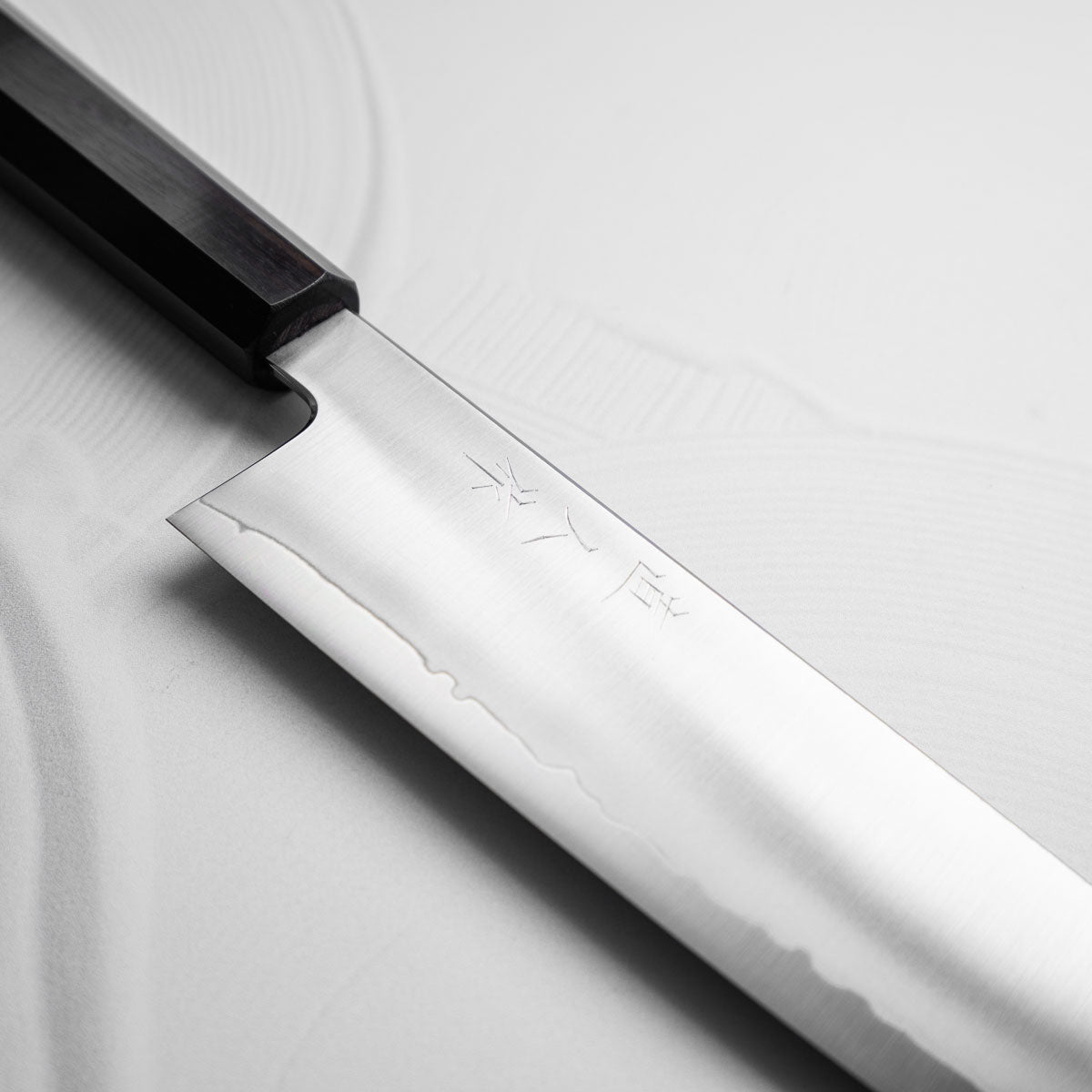 Naohito Myojin is a fast-rising sharpener working out of Kochi prefecture. His work is now in such high demand that long wait times are now the norm. He is the sharpener behind the Tetsujin line and the 'Fujiyama' line by Konosuke.