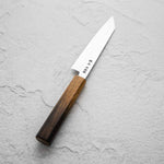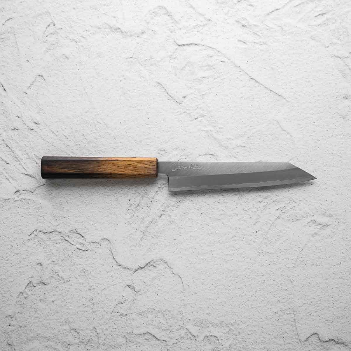The Petty knife, a quintessential tool in Japanese cuisine, is a smaller utility knife used for precise, delicate tasks. Often considered a smaller sibling to the chef's knife, it excels in hand-held tasks like peeling, trimming, and intricate cutting. Its versatility makes it an essential for detailed culinary work.
