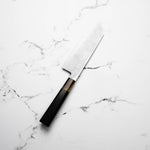 The Bunka knife, a versatile and traditional Japanese kitchen tool, features a distinctive, angular tip and a wide blade. It's designed for precision tasks like slicing, dicing, and chopping. Ideal for handling vegetables, meat, and fish, the Bunka is a multifunctional knife celebrated for its utility and unique aesthetic.