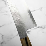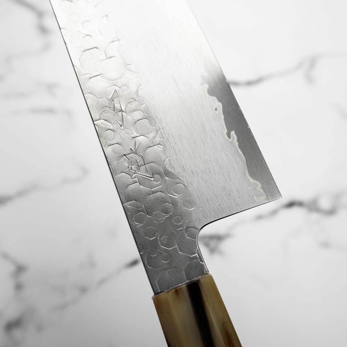 Japanese SG2, also known as R2 steel, is a high-end, powdered metallurgy stainless steel and one of the finest knife-making steels available in Japan. It is a favorite of many for its exceptional hardness and edge retention. Its fine, uniform grain structure enables razor-sharp edges, all the while holding an edge for much longer than Carbon steel knives, without needing to be concerned about rust appearing.