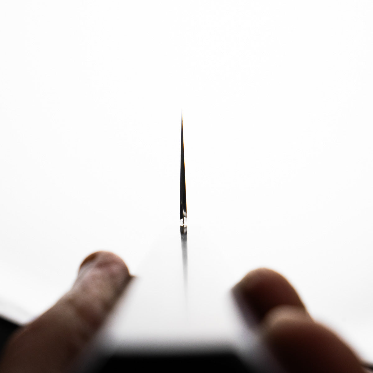 I was surprised how much I like using this, I have found myself reaching for this knife over other really **** knives. It is light, but not too light, super well balanced, feels perfect in the hand. Sharp out of the box, but not scary and very slicey without being too delicate. Food release is good, and is comfortable for doing a large amount of prep at home. Fit and finish is amazing and it looks smoking hot.