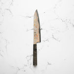 The Gyuto knife, a cornerstone of Japanese culinary tradition, is a versatile, all-purpose chef's knife. Its name, translating to "beef sword," reflects its proficiency in slicing meat and in more modern times vegetables. However, its slightly curved blade excels in chopping, dicing, and mincing, making it indispensable in any kitchen