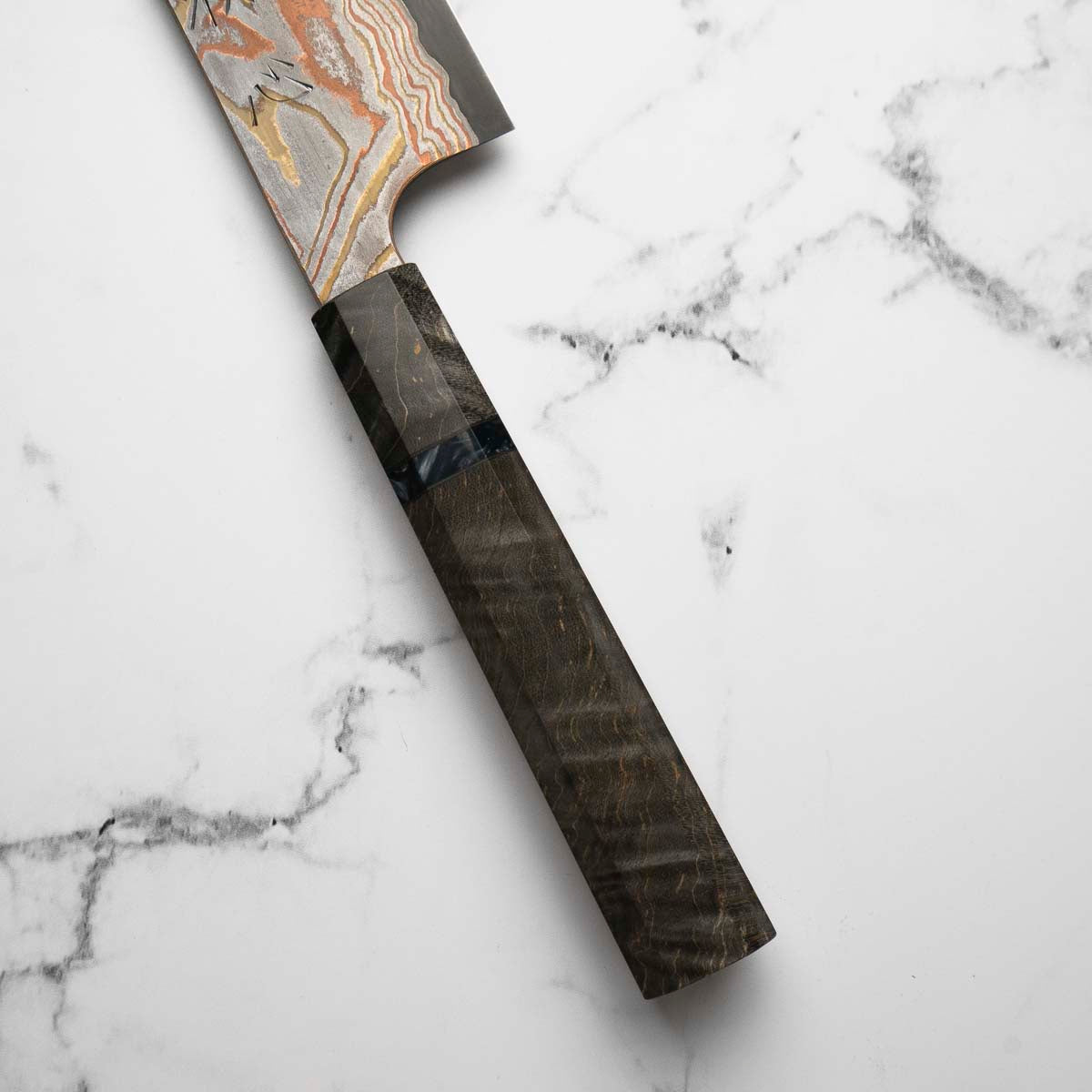 Hatsukokoro Irodori Blue 2 Rainbow Damascus Gyuto 240mm - Dark Maple
