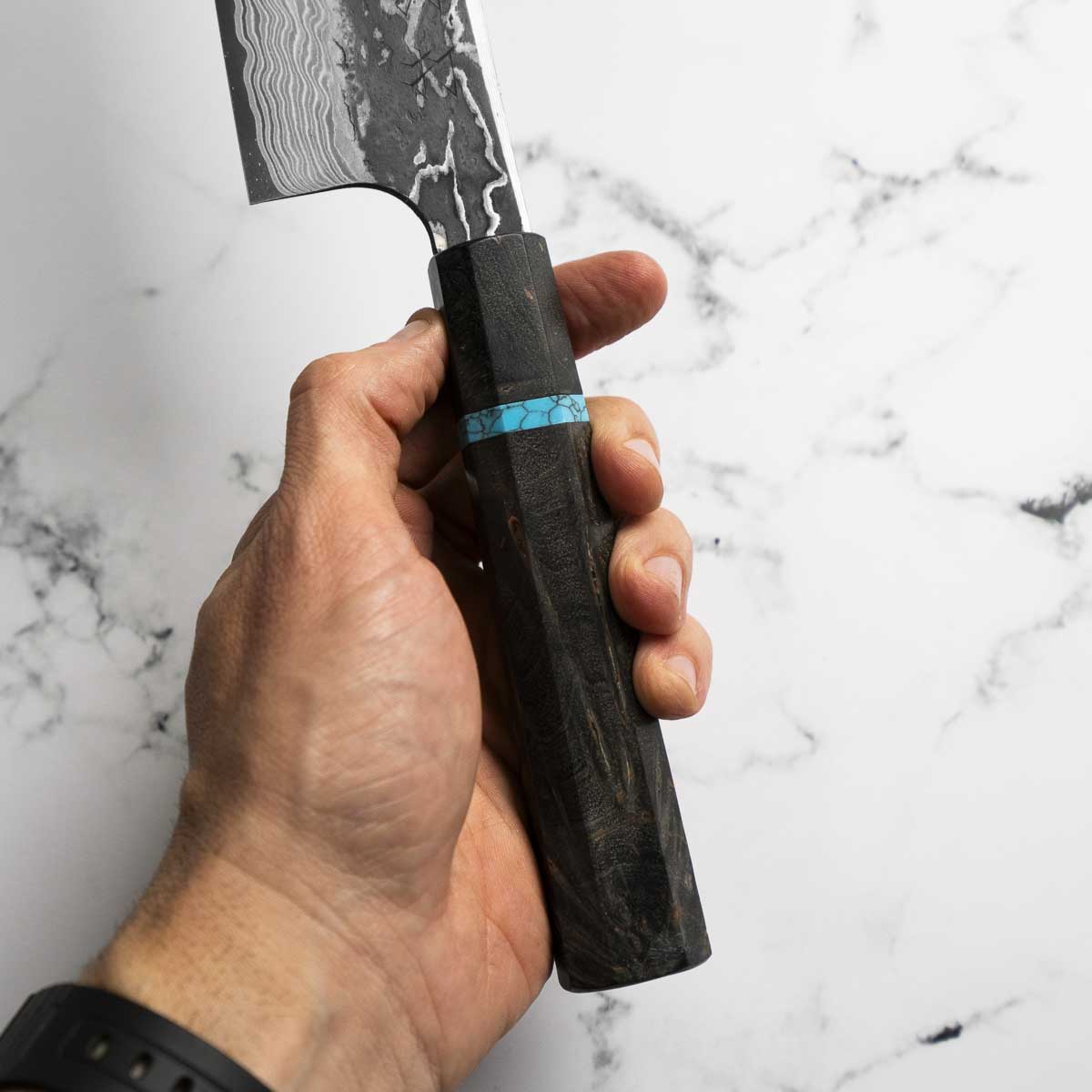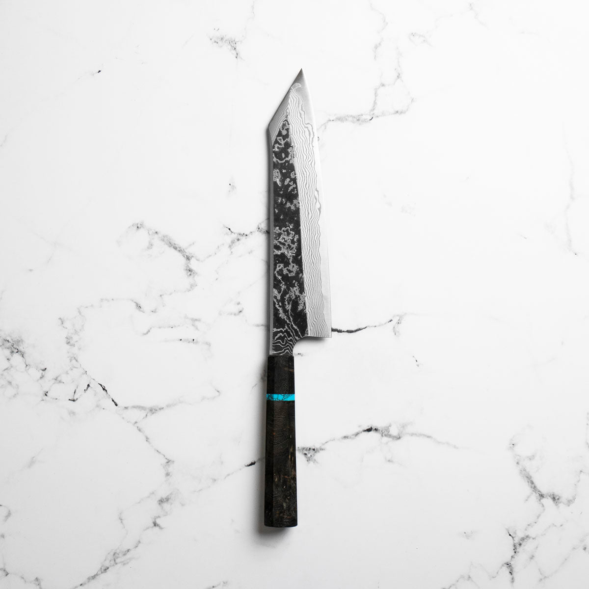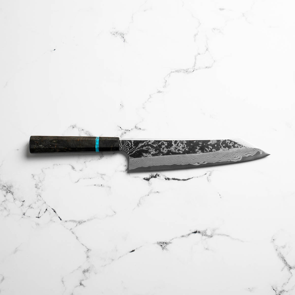 Hatsukokoro SLD Kurouchi Damascus Kiritsuke Gyuto 240 - Maple Turquoise