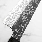Japanese SLD steel is a semi-stainless steel crafted through advanced metallurgy. It is used often in Sanjo knives, has a non-chippy edge and is extremely tough. This high-carbon steel, enriched with chromium and molybdenum, offers excellent performance, but be mindful not to leave it wet for extended periods.