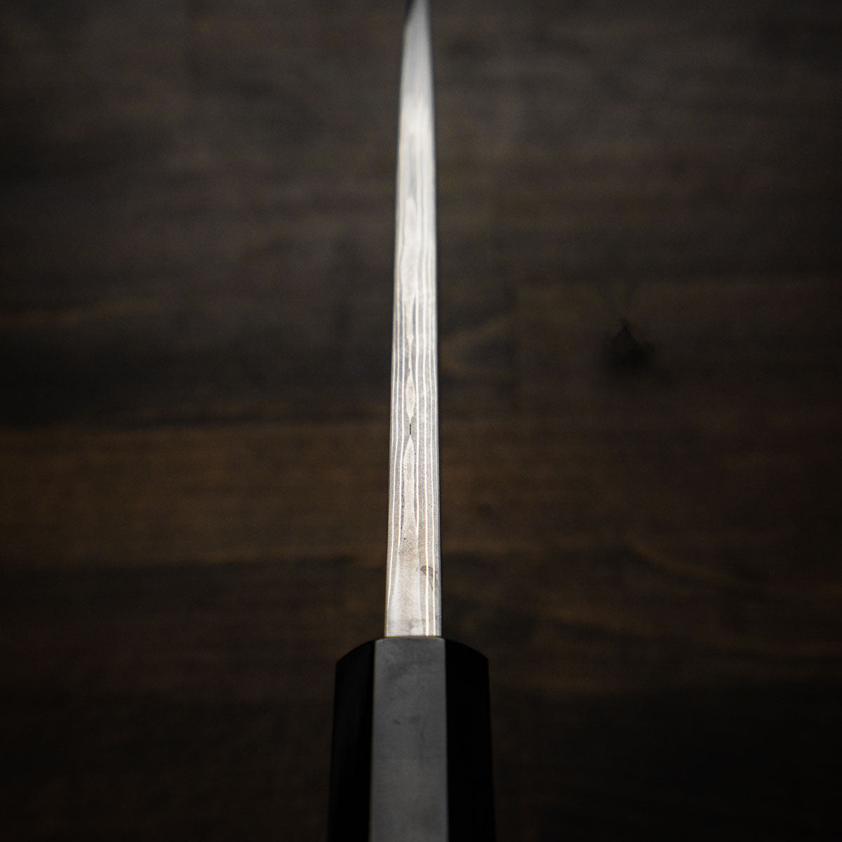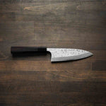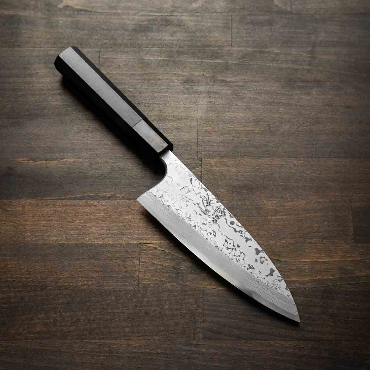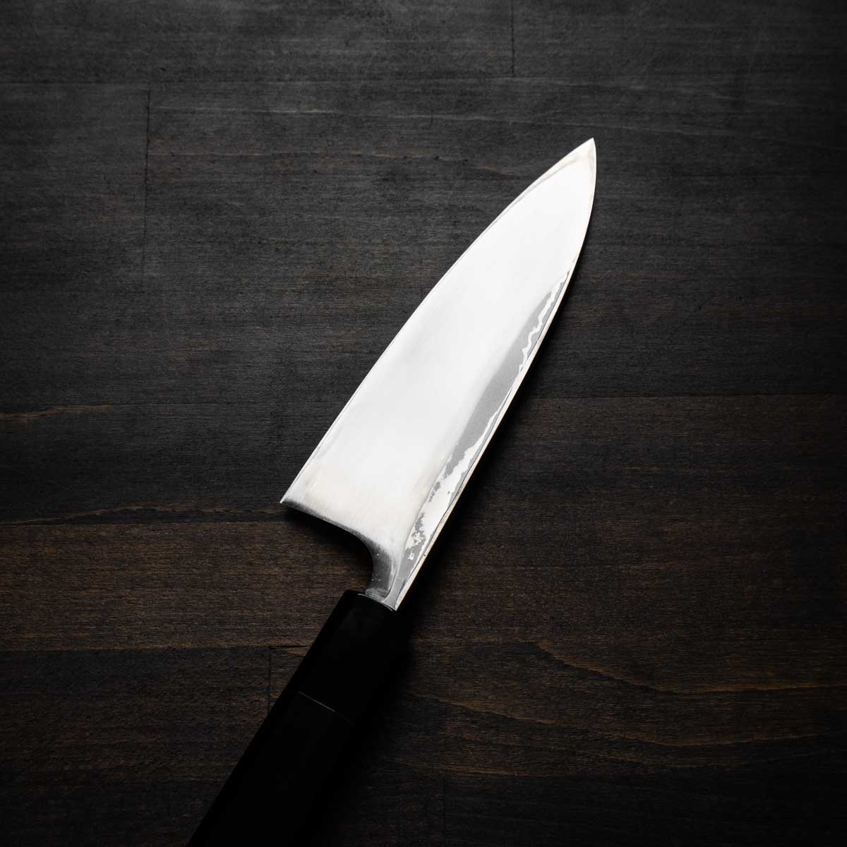 The Deba knife, deeply rooted in Japanese culinary tradition, is a robust, single-bevel knife (sometimes double) primarily designed for fileting fish. Its thick, heavy blade effortlessly glides through fish bones and joints, while preserving delicate flesh. Ideal for seafood preparation, the Deba is a staple in Japanese kitchens for its precision and strength.