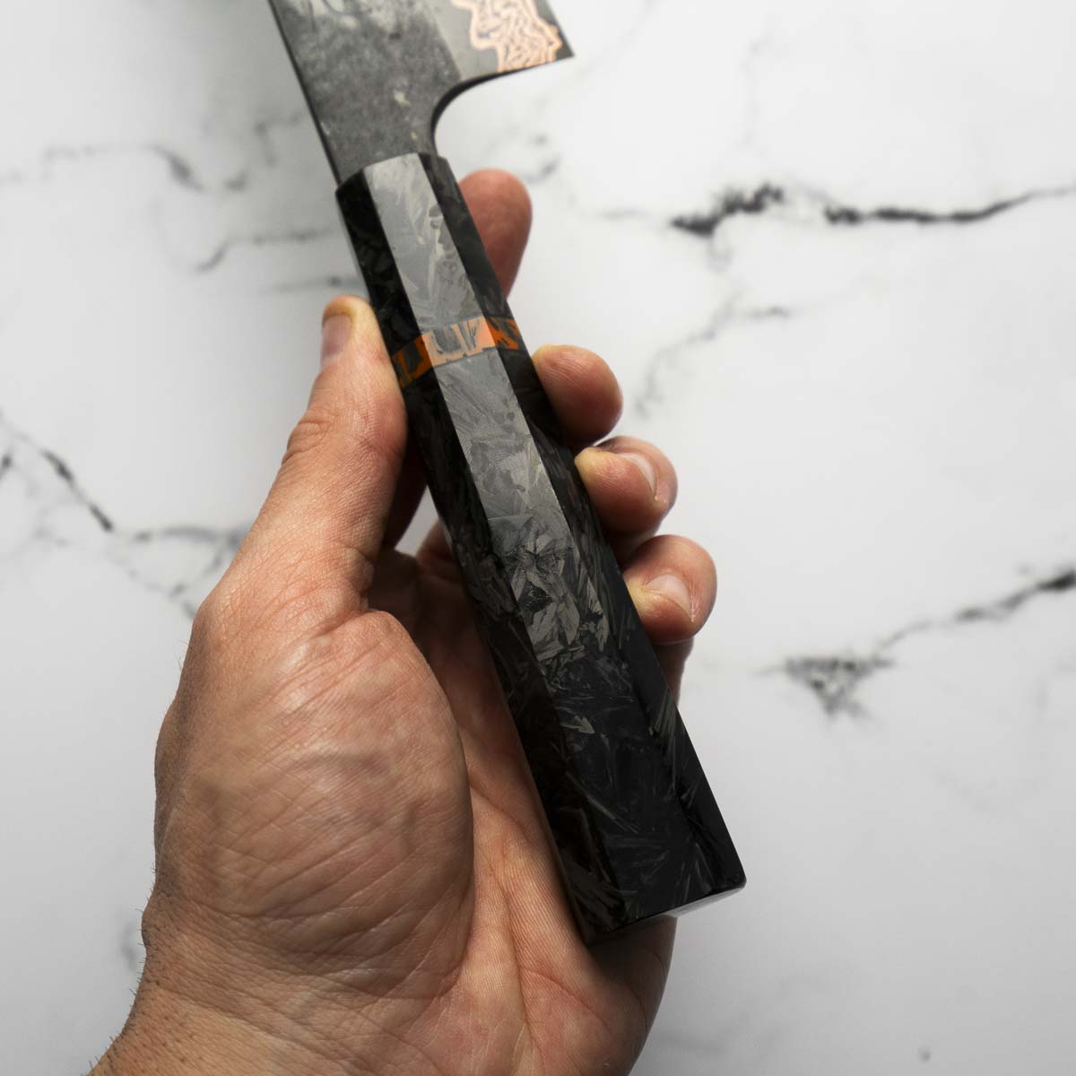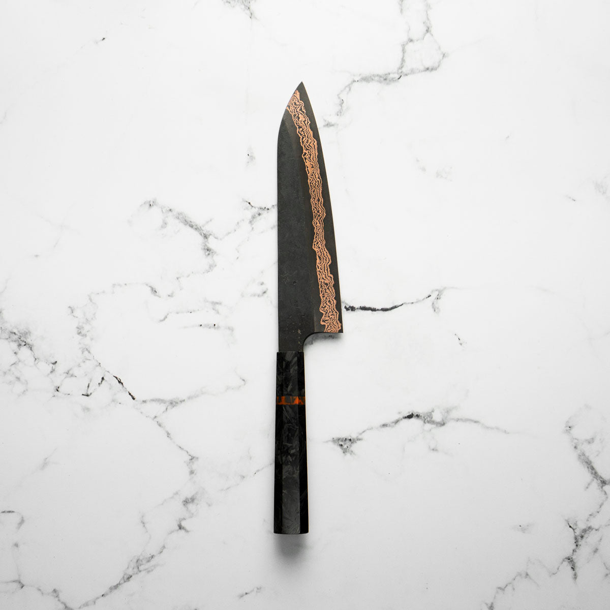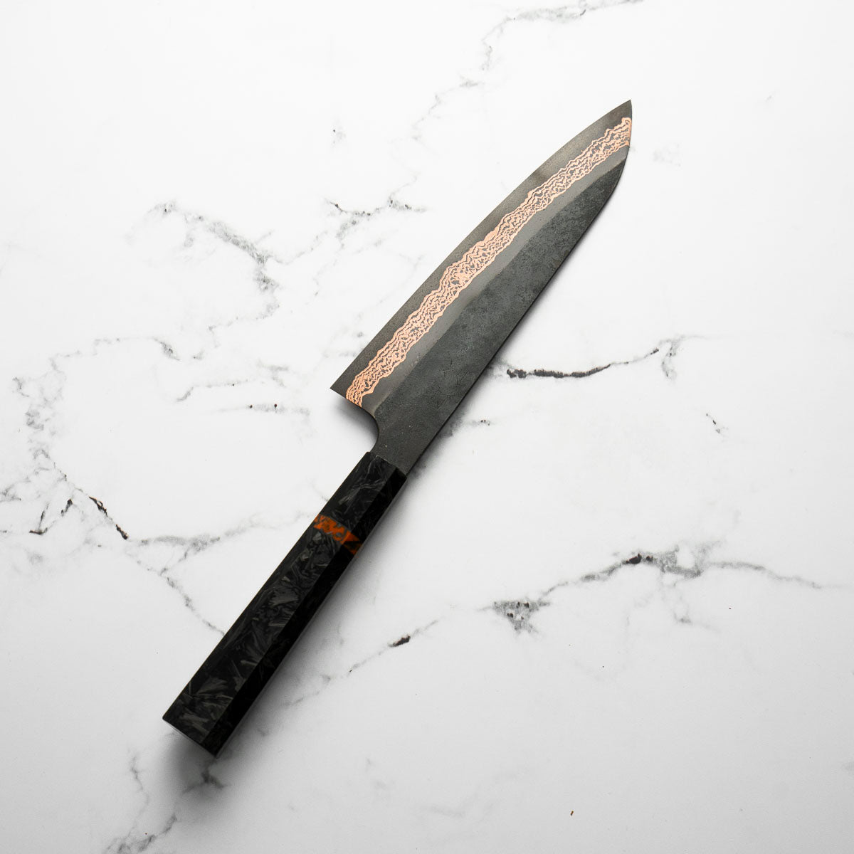 Hatsukokoro Yorokobi Kurouchi SLD Damascus Gyuto 210mm - Carbon Fibre