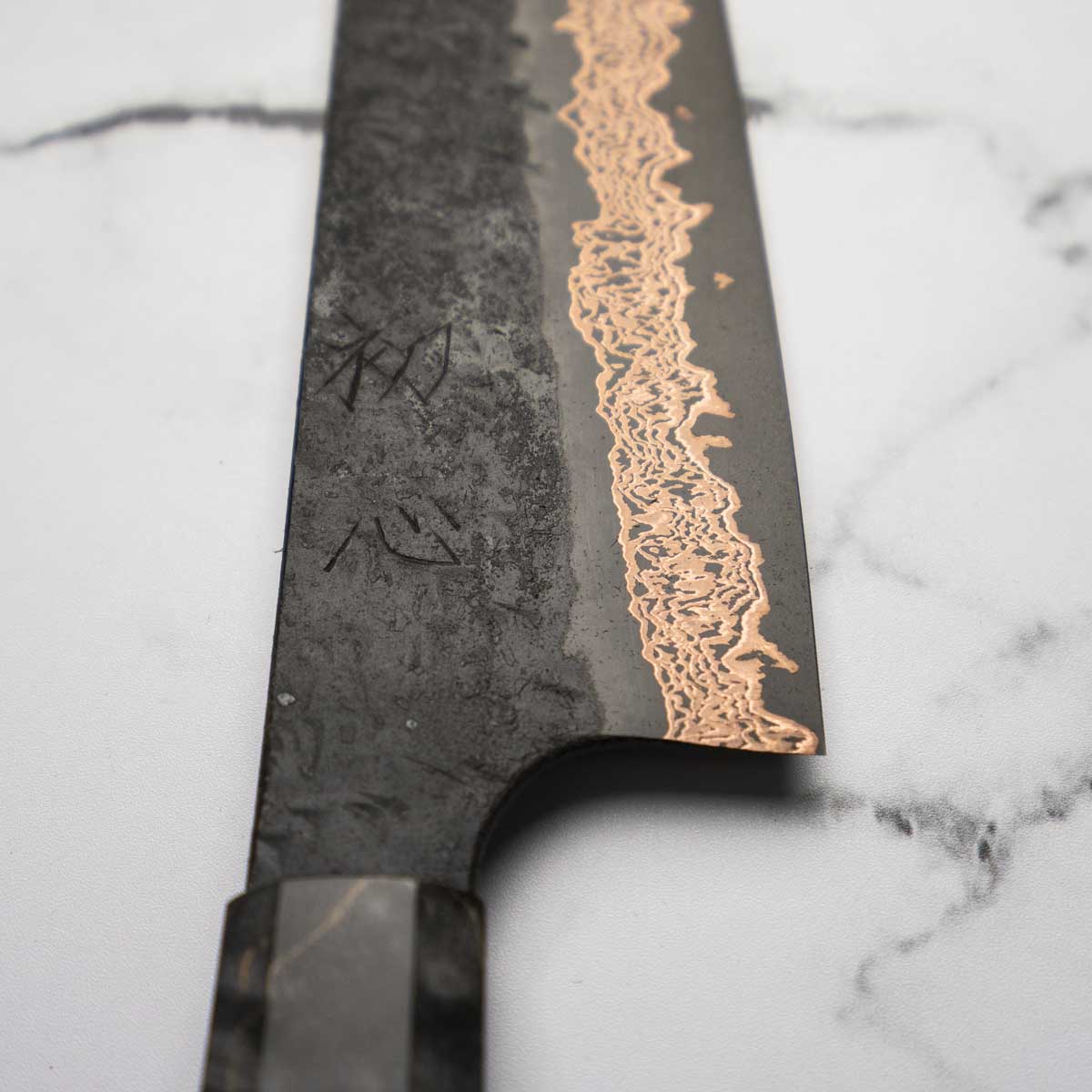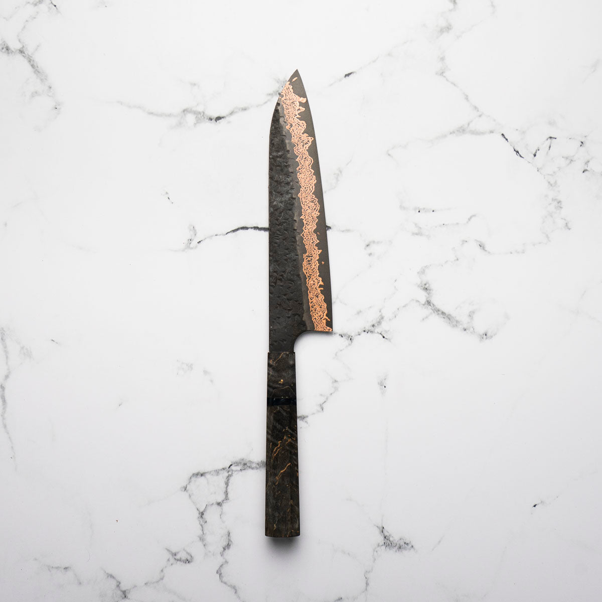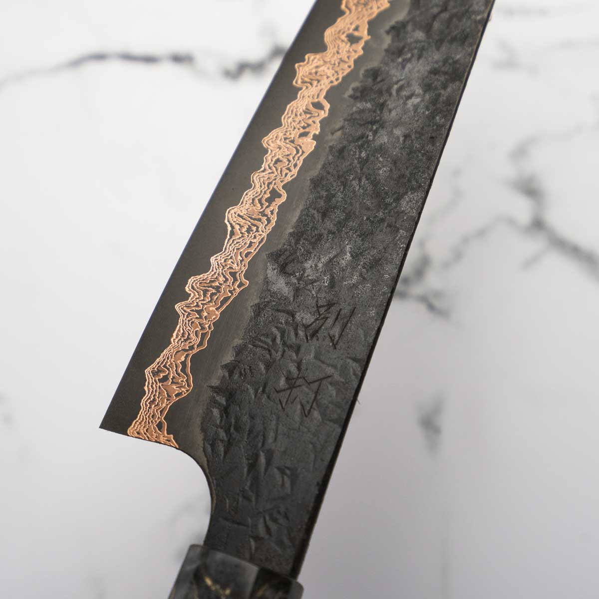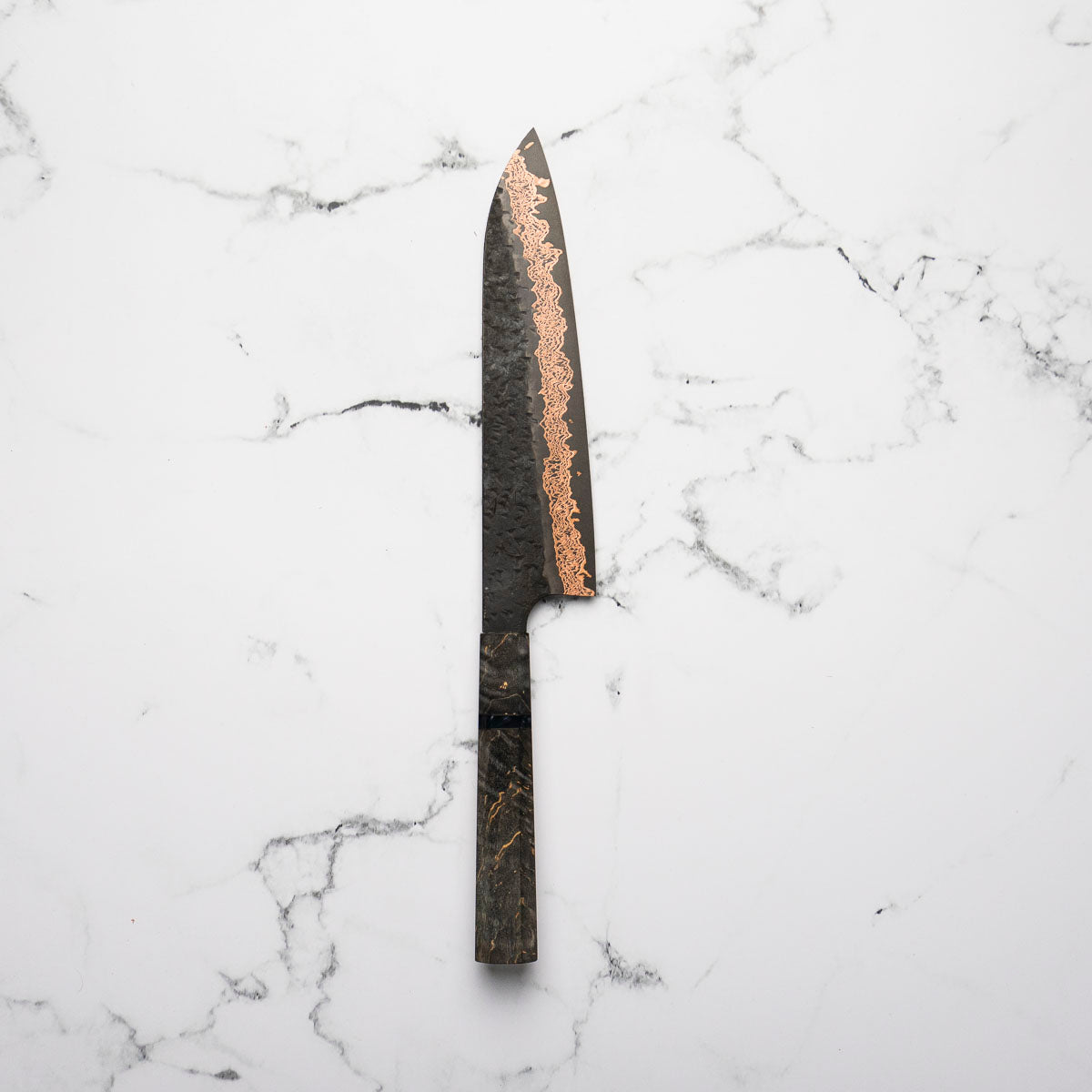 Hatsukokoro Yorokobi Kurouchi SLD Damascus Tsuchime Gyuto 210mm - Dark Maple