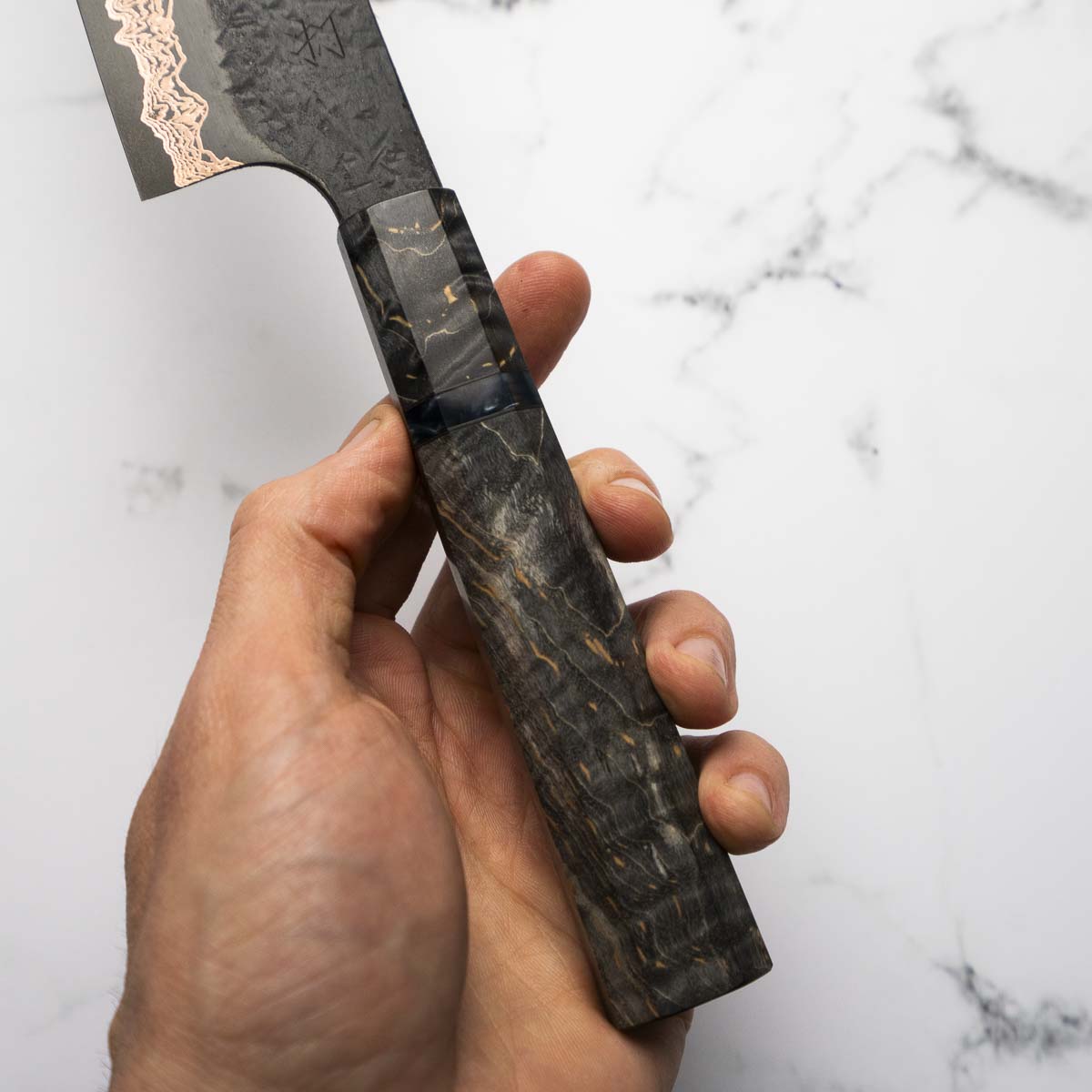 Japanese SLD steel is a semi-stainless steel crafted through advanced metallurgy. It is used often in Sanjo knives, has a non-chippy edge and is extremely tough. This high-carbon steel, enriched with chromium and molybdenum, offers excellent performance, but be mindful not to leave it wet for extended periods.