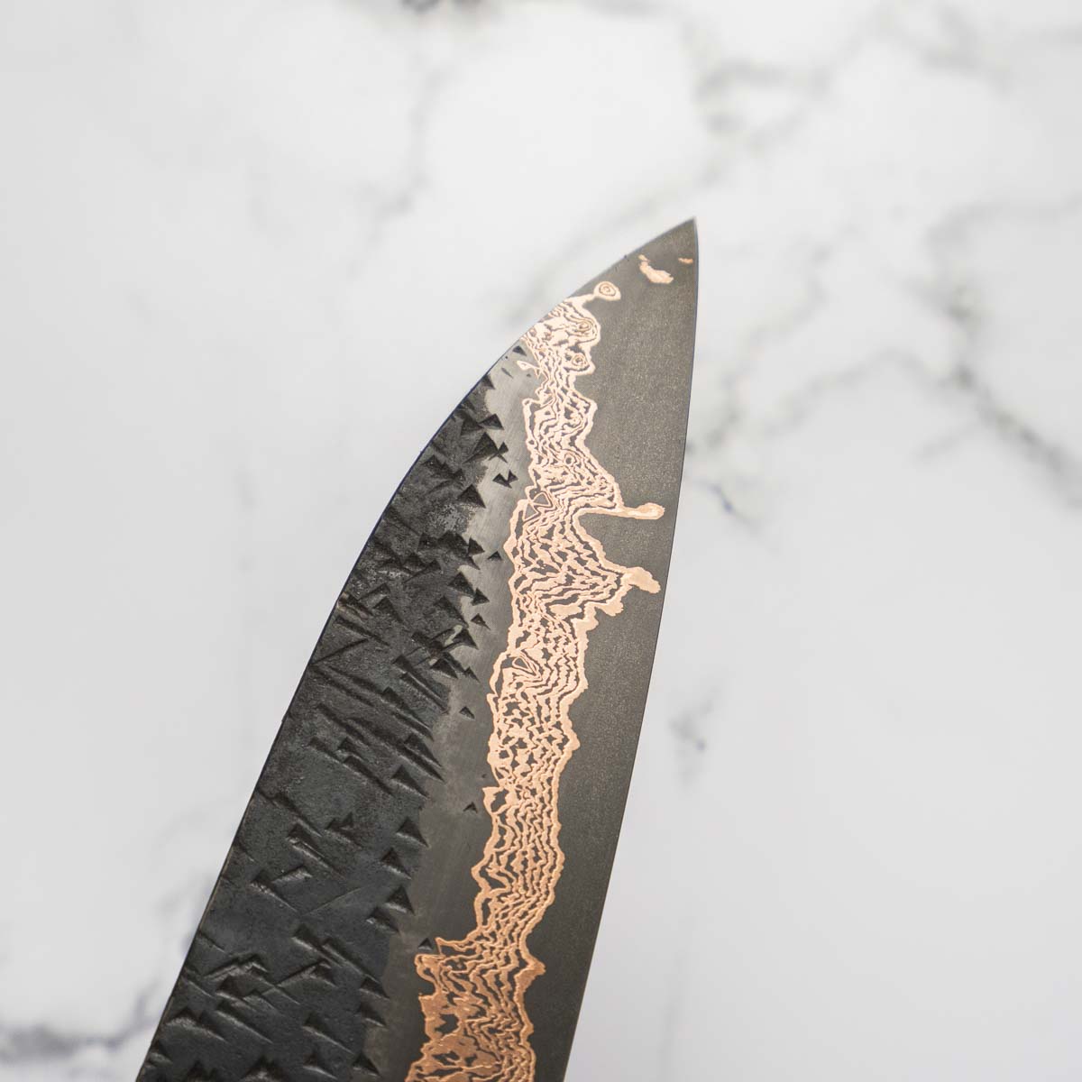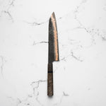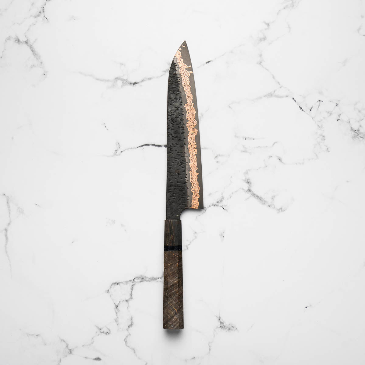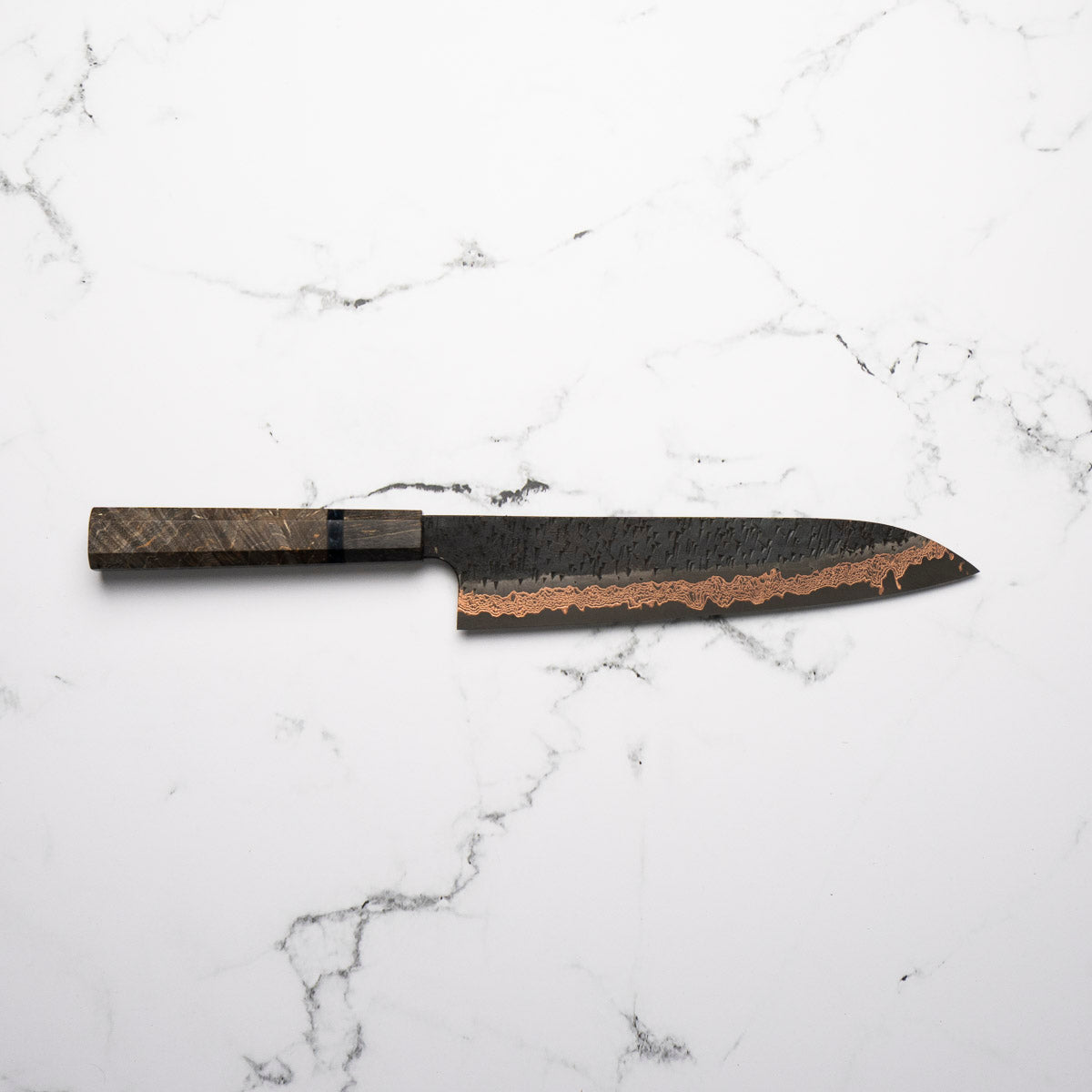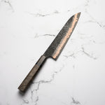 Hatsukokoro Yorokobi Kurouchi SLD Damascus Tsuchime Gyuto 240mm - Dark Maple