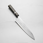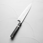 One of their most celebrated offerings is the SKD steel series — featuring a semi-stainless high-carbon core clad in stainless steel. The blades showcase a distinctive wide-bevel grind with a shallow hammer texture that sits stylistically between nashiji and kurouchi finishes. Paired with traditional burnt chestnut handles, each knife reflects Yoshikane’s dedication to consistency, craftsmanship, and timeless design.