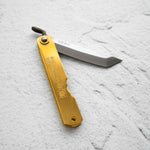 Discover the time-honored tradition of Japanese craftsmanship with our stunning Higonokami knives. The Higonokami, a traditional Japanese pocket knife, features a unique friction-folding design and a razor-sharp blade that has been masterfully forged using ancient techniques. These knives are not only functional tools but also true works of art, showcasing the beauty and skill of Japanese blade smithing.