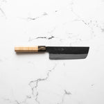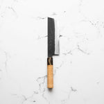 The Nakiri knife, revered in Japanese culinary traditions, is engineered for exceptional vegetable cutting. Featuring a distinct, straight-edged, and rectangular blade, it excels in creating uniform, precise cuts and aesthetic presentation. Its technical design ensures efficiency and precision, making it a valuable tool for both professional chefs and home cooks.