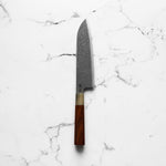 The Santoku knife, a classic in Japanese kitchens, translates to "three virtues," symbolizing its proficiency in slicing, dicing, and mincing. With a shorter, versatile blade and a balanced design, it's ideal for a range of tasks, from cutting meat to chopping vegetables, making it a beloved all-purpose tool.