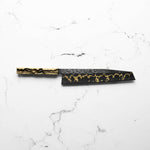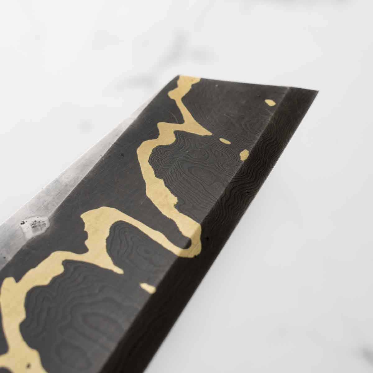 This knife is made from a high-carbon steel and as such, will require a little more care than a regular off-the-shelf knife. It must be dried shortly after use, as prolonged exposure to moisture can cause rust spots to appear. A very light coat of oil during storage also helps to prevent rust spots. A patina (colouration and seasoning of the steel) will occur with use.