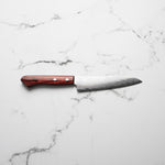 The Petty knife, a quintessential tool in Japanese cuisine, is a smaller utility knife used for precise, delicate tasks. Often considered a smaller sibling to the chef's knife, it excels in hand-held tasks like peeling, trimming, and intricate cutting. Its versatility makes it an essential for detailed culinary work.