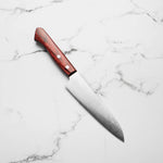The Petty knife, a quintessential tool in Japanese cuisine, is a smaller utility knife used for precise, delicate tasks. Often considered a smaller sibling to the chef's knife, it excels in hand-held tasks like peeling, trimming, and intricate cutting. Its versatility makes it an essential for detailed culinary work.