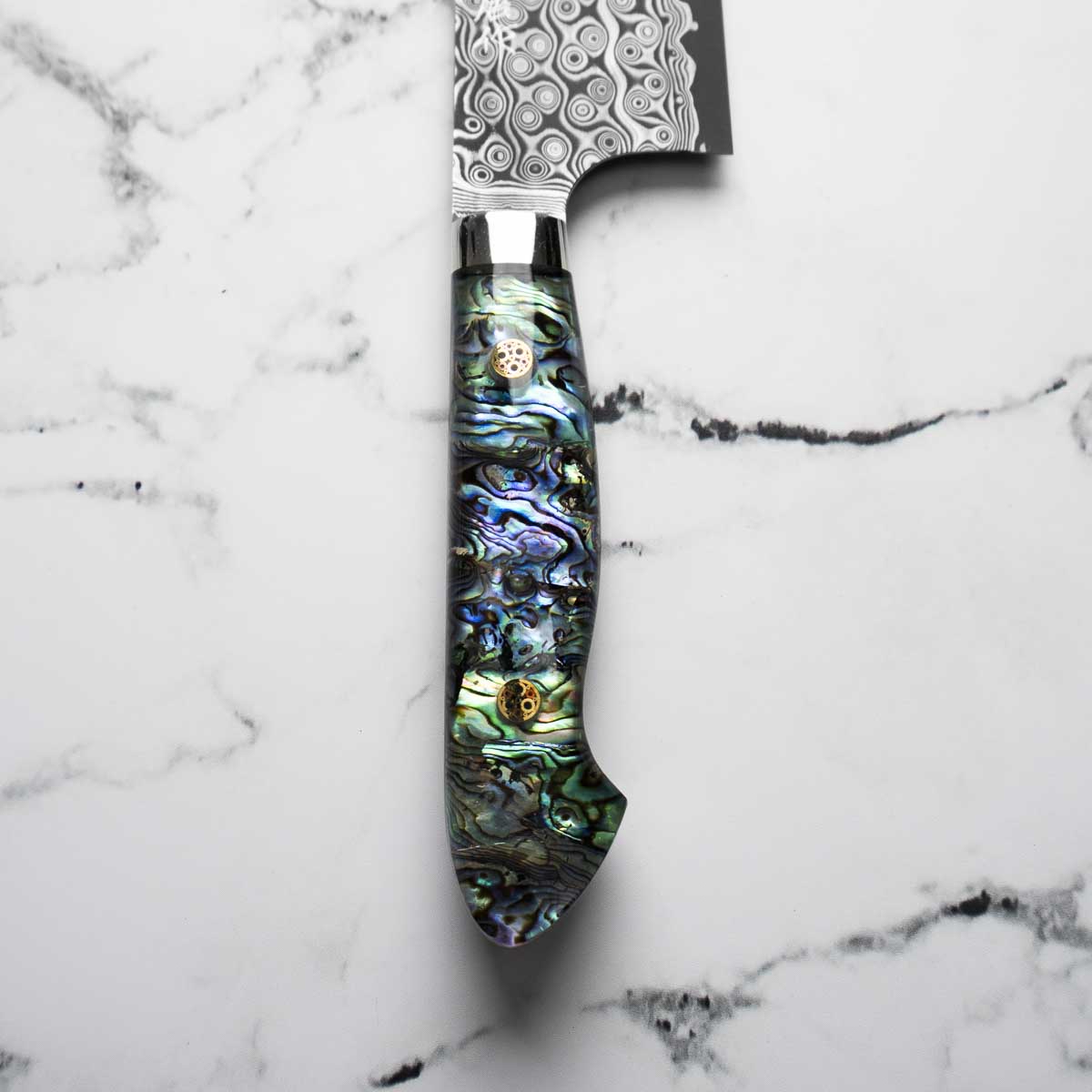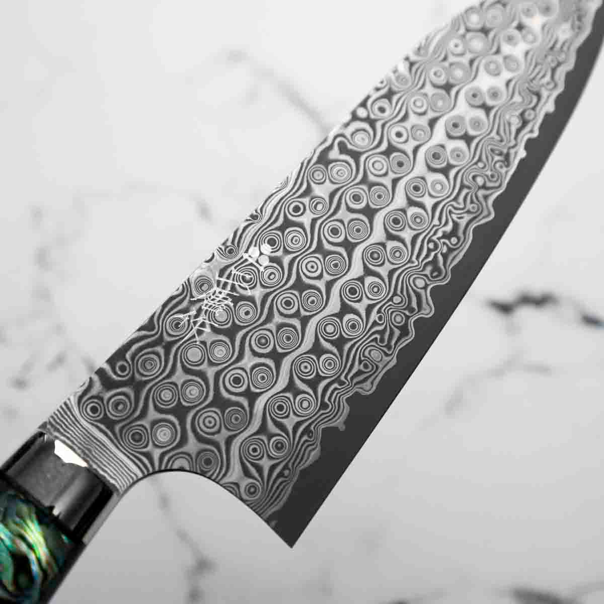 Nigara Hamono "Anmon" SG2 Damascus Santoku 180mm - Western Abalone Handle