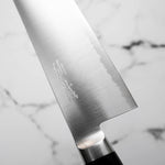 Japanese SG2, also known as R2 steel, is a high-end, powdered metallurgy stainless steel and one of the finest knife-making steels available in Japan. It is a favourite of many for its exceptional hardness and edge retention. Its fine, uniform grain structure enables razor-sharp edges, all the while holding an edge for much longer than Carbon steel knives, without needing to be concerned about rust appearing.
