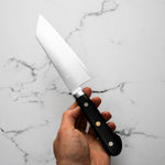 The Bunka knife, a versatile and traditional Japanese kitchen tool, features a distinctive, angular tip and a wide blade. It's designed for precision tasks like slicing, dicing, and chopping. Ideal for handling vegetables, meat, and fish, the Bunka is a multifunctional knife celebrated for its utility and unique aesthetic.