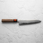 Tanaka honed his skills at the renowned Takefu Knife Village in Fukui Prefecture before establishing his own forge back in Miki. Widely regarded as one of Japan’s most skilled young artisans, he masterfully works with an extensive range of knifemaking steels—from traditional high-carbon (such as Aogami) to advanced powder stainless steels like R2/SG2.