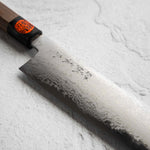 Tanaka honed his skills at the renowned Takefu Knife Village in Fukui Prefecture before establishing his own forge back in Miki. Widely regarded as one of Japan’s most skilled young artisans, he masterfully works with an extensive range of knifemaking steels—from traditional high-carbon (such as Aogami) to advanced powder stainless steels like R2/SG2.