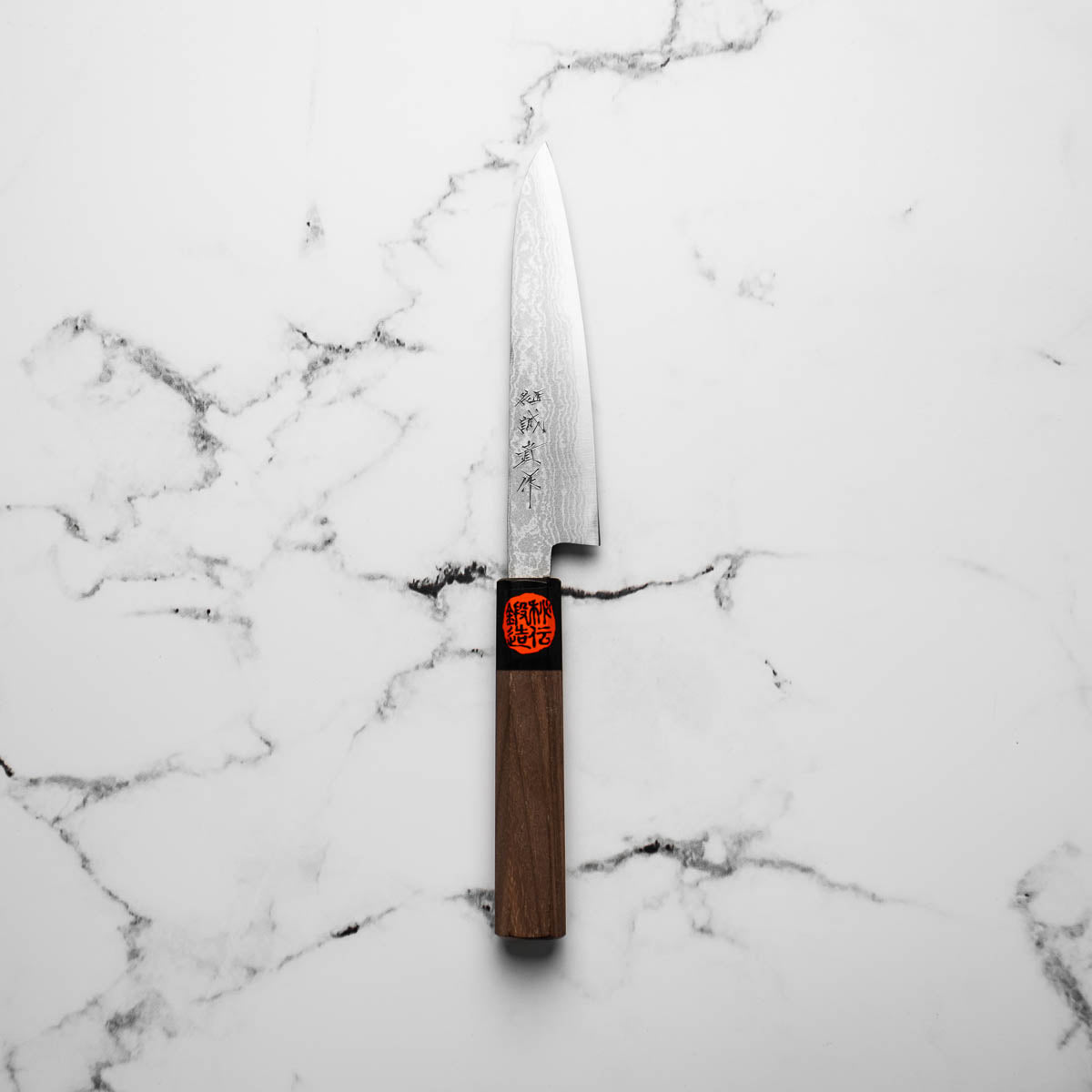 The Petty is a smaller utility knife, often ranging from 120-150mm. It is for fine dicing, mincing, and off-board work.