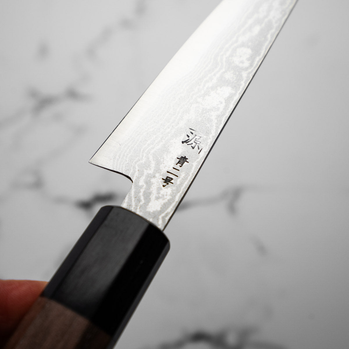 Japanese Blue Steel #2, or "Aogami" #2, is a revered high-carbon steel alloyed with low amounts of chromium and tungsten. It strikes an excellent balance between durability, edge retention, and ease of sharpening. Slightly more ductile than Blue #1, it's widely used in crafting traditional Japanese knives, beloved by chefs for its resilience and sharpness, albeit is slightly softer than Blue 1.