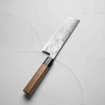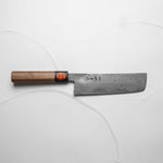 The Nakiri knife, revered in Japanese culinary traditions, is engineered for exceptional vegetable cutting. Featuring a distinct, straight-edged, and rectangular blade, it excels in creating uniform, precise cuts and aesthetic presentation. Its technical design ensures efficiency and precision, making it a valuable tool for both professional chefs and home cooks.