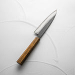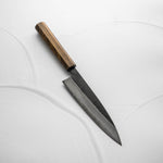 The Petty knife, a quintessential tool in Japanese cuisine, is a smaller utility knife used for precise, delicate tasks. Often considered a smaller sibling to the chef's knife, it excels in hand-held tasks like peeling, trimming, and intricate cutting. Its versatility makes it an essential for detailed culinary work.