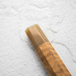 Fancy up your kitchen knives with a custom handle! This stunning Octagon handle is crafted from Mausoleum Wood and Blonde Buffalo Horn, and is suitable for Bunka/Nakiri blades. This double-blonde combination looks fantastic on any blade finish, dark or light.