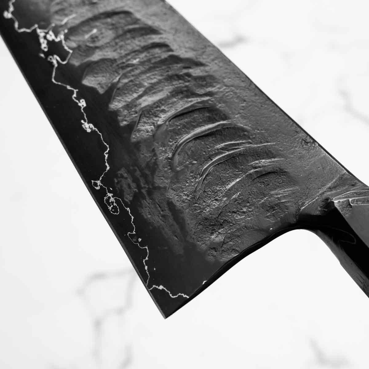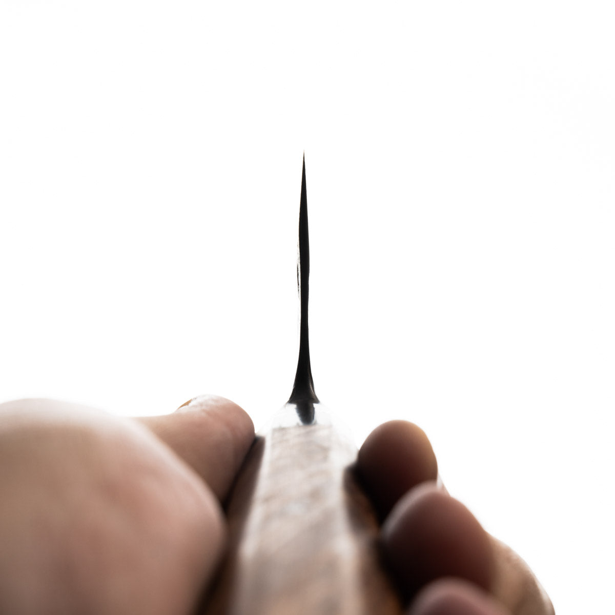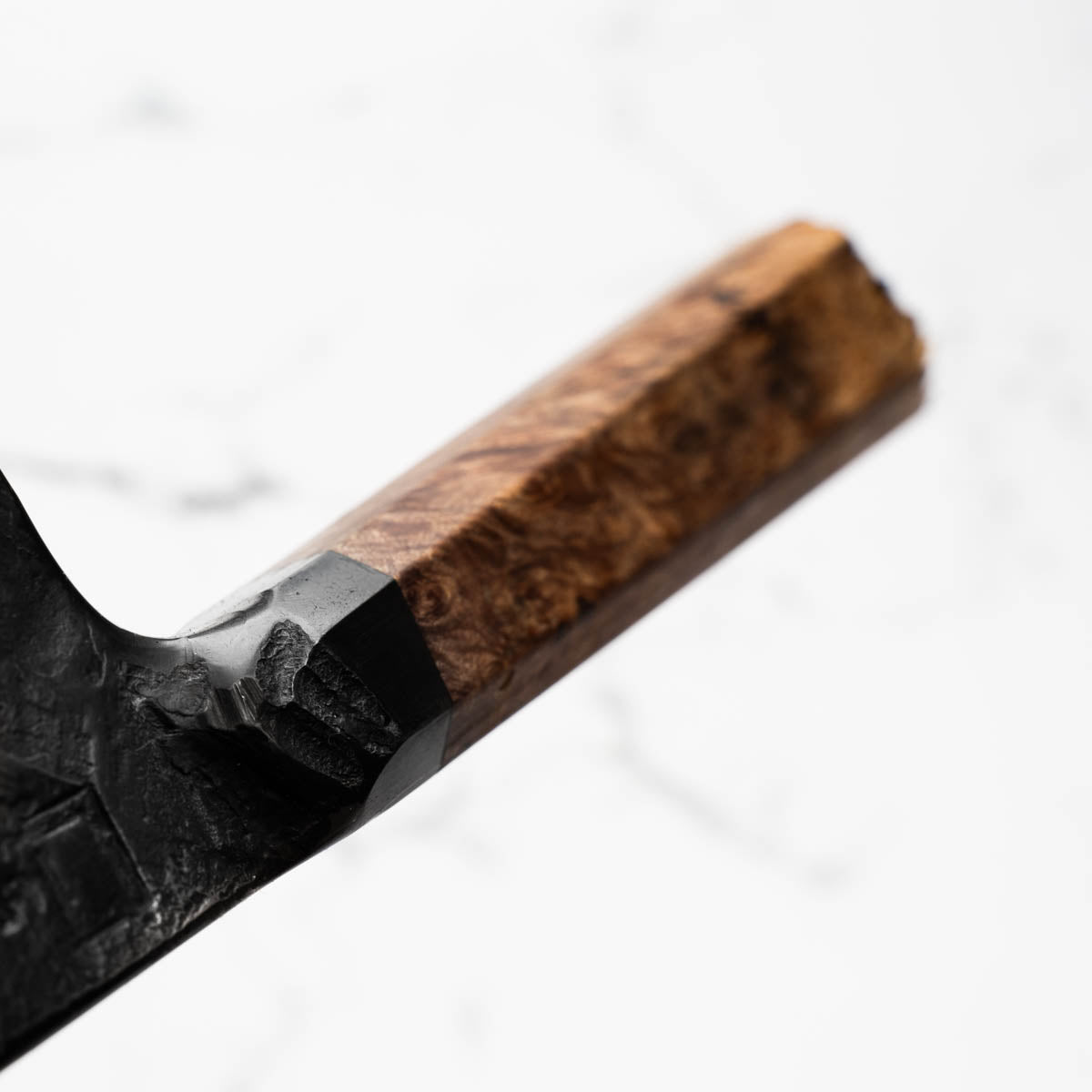 This knife is made from a high-carbon steel and as such, will require a little more care than a regular off-the-shelf knife. It must be dried shortly after use, as prolonged exposure to moisture can cause rust spots to appear. A very light coat of oil during storage also helps to prevent rust spots. A patina (colouration and seasoning of the steel) will occur with use.