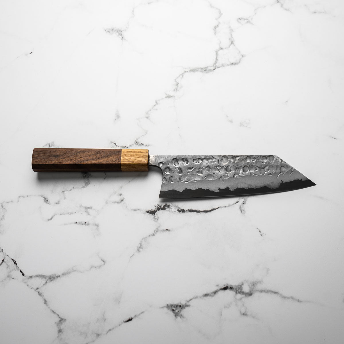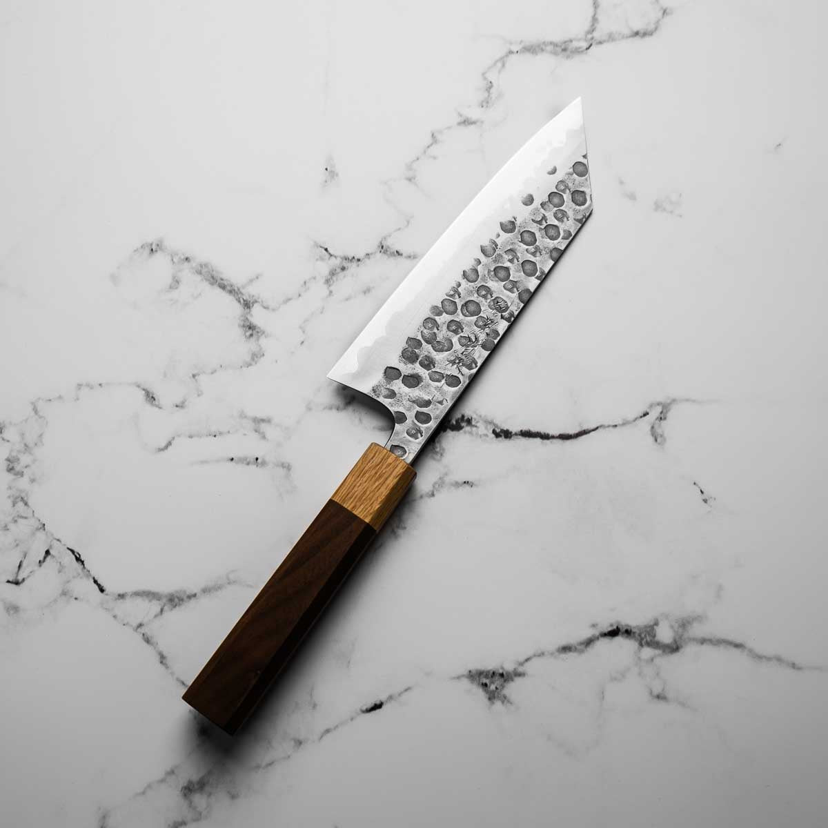The Bunka knife, a versatile and traditional Japanese kitchen tool, features a distinctive, angular tip and a wide blade. It's designed for precision tasks like slicing, dicing, and chopping. Ideal for handling vegetables, meat, and fish, the Bunka is a multifunctional knife celebrated for its utility and unique aesthetic.