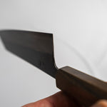 The Bunka knife, a versatile and traditional Japanese kitchen tool, features a distinctive, angular tip and a wide blade. It's designed for precision tasks like slicing, dicing, and chopping. Ideal for handling vegetables, meat, and fish, the Bunka is a multifunctional knife celebrated for its utility and unique aesthetic.