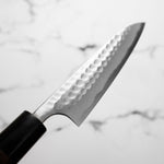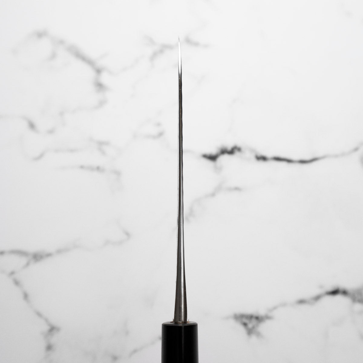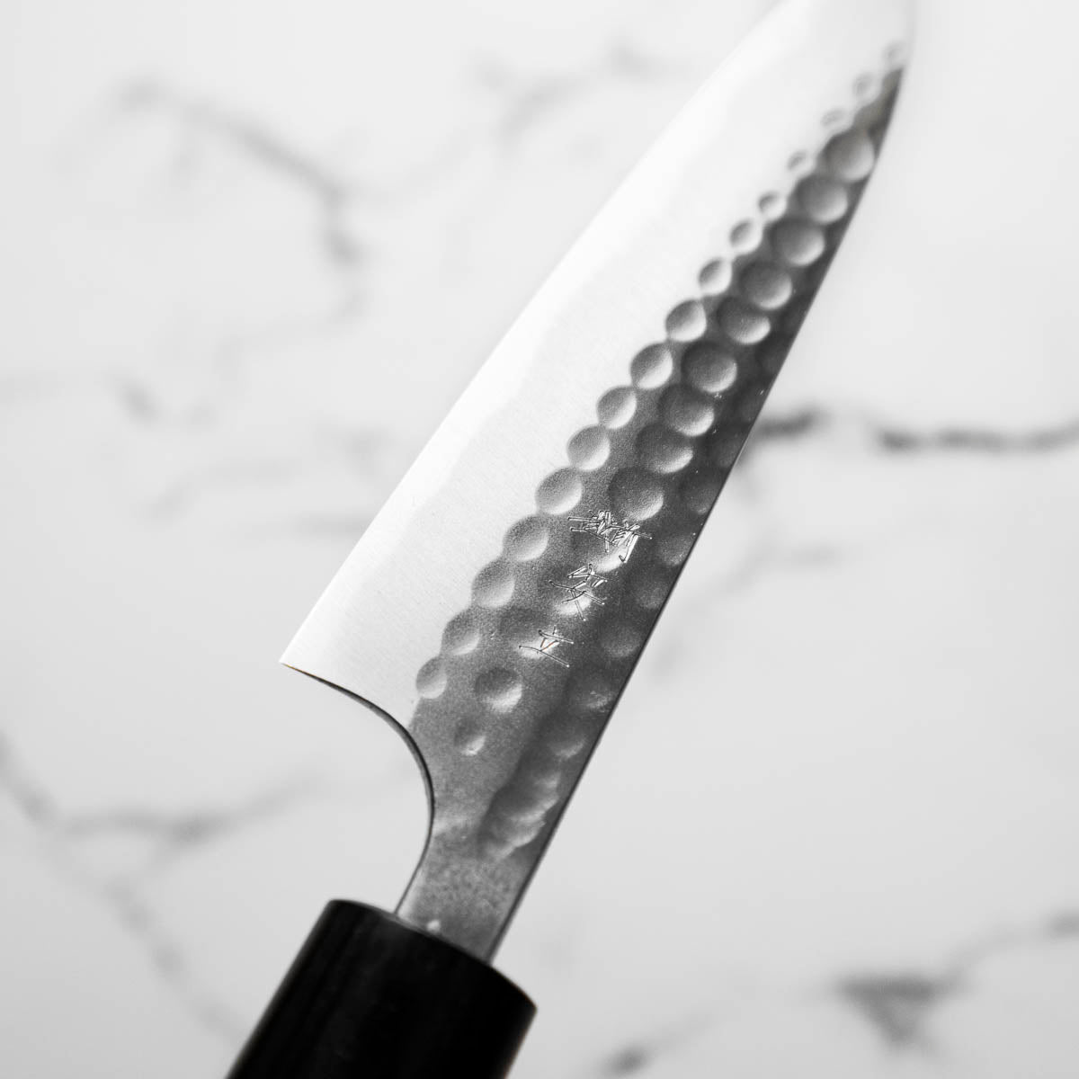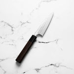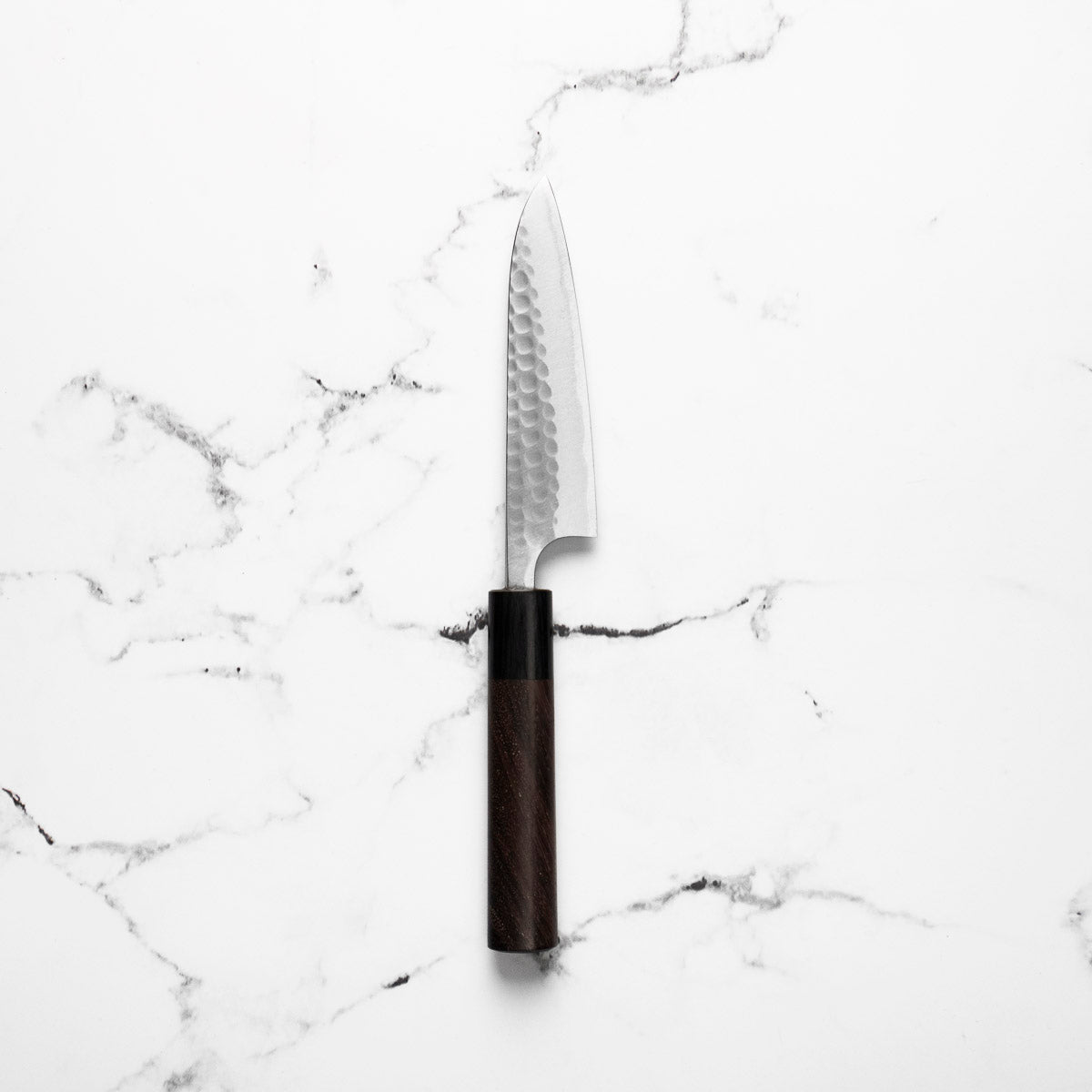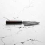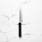 The Petty knife, a quintessential tool in Japanese cuisine, is a smaller utility knife used for precise, delicate tasks. Often considered a smaller sibling to the chef's knife, it excels in hand-held tasks like peeling, trimming, and intricate cutting. Its versatility makes it an essential for detailed culinary work.