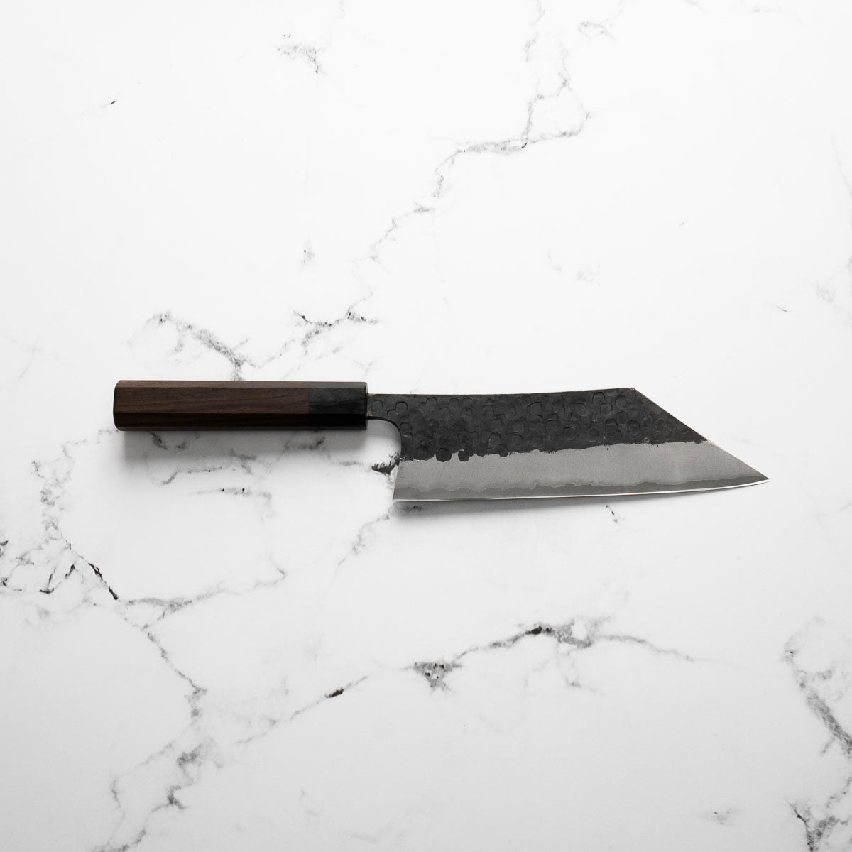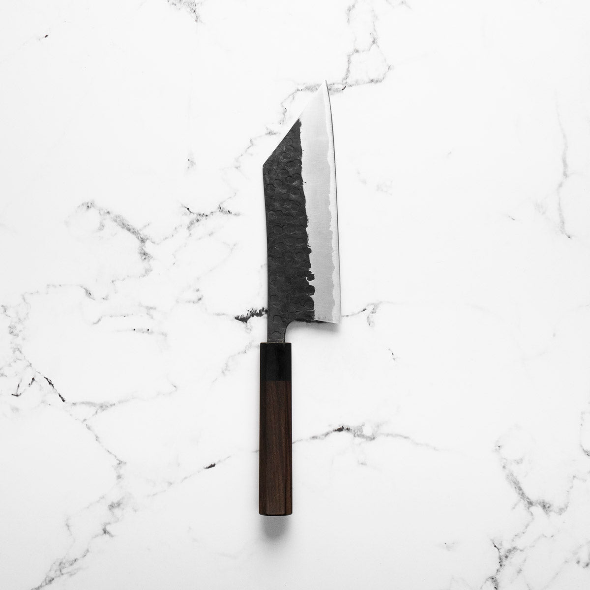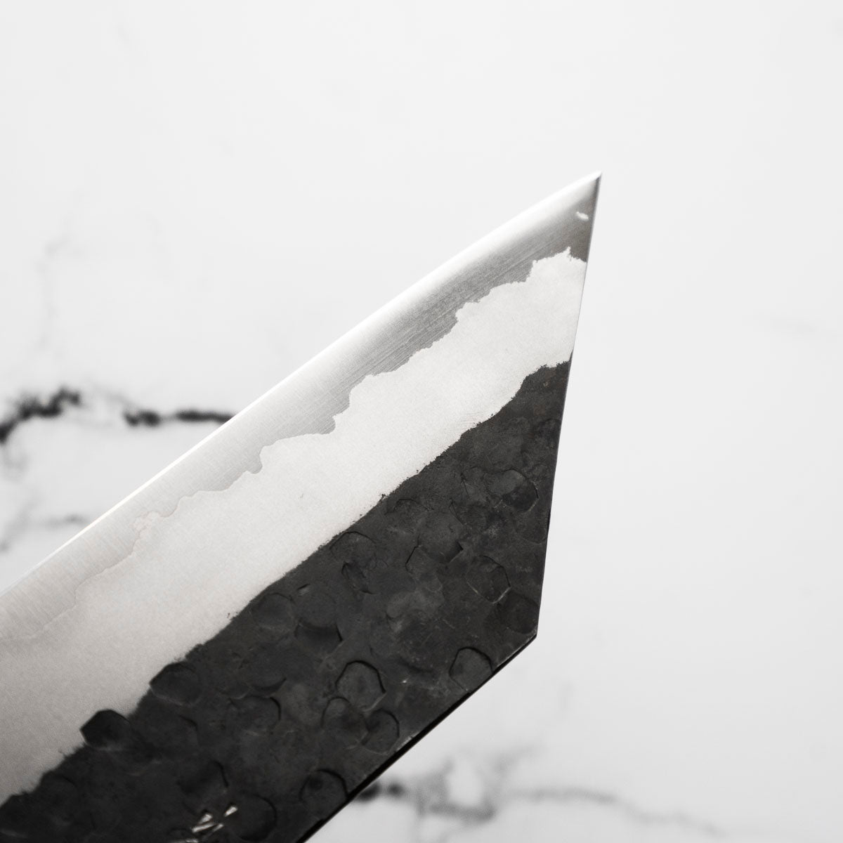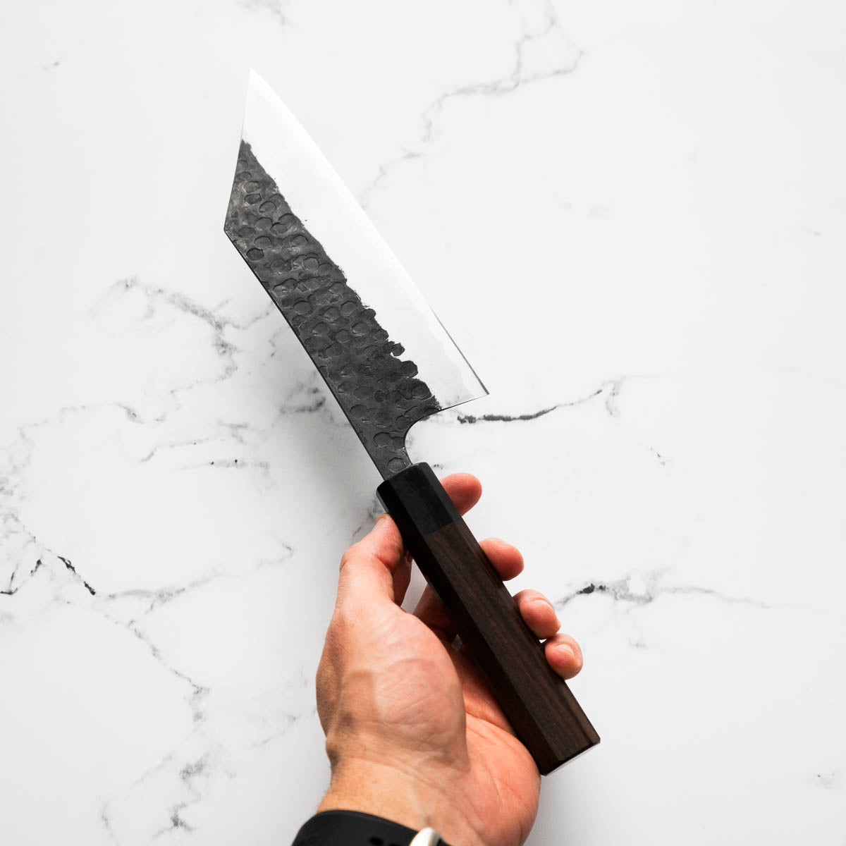 The Hakata knife, a versatile and traditional Japanese kitchen tool, features a distinctive, angular tip and a wide blade. It's designed for precision tasks like slicing, dicing, and chopping. Ideal for handling vegetables, meat, and fish, the Hakata is a multifunctional knife celebrated for its utility and unique aesthetic.